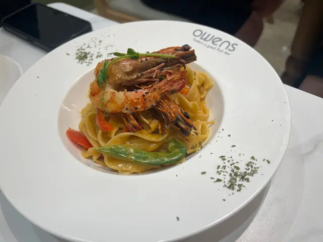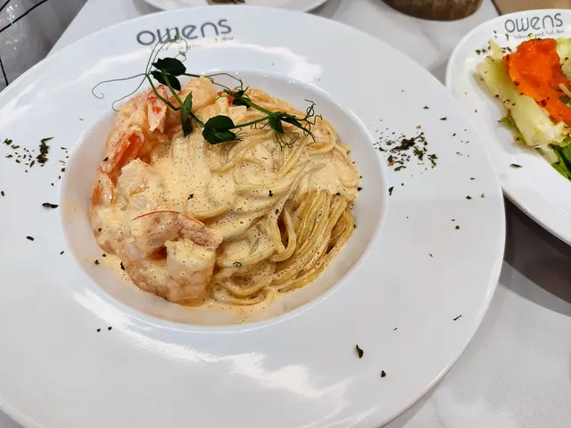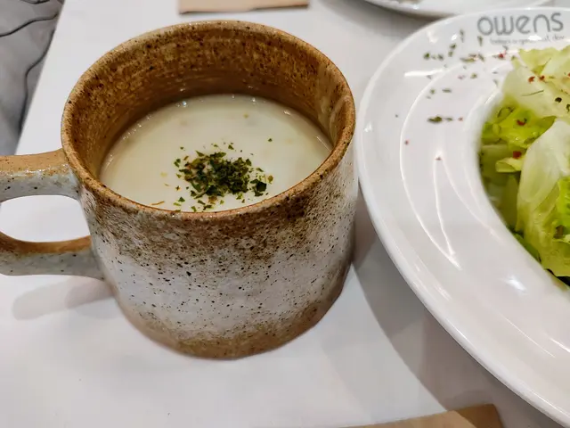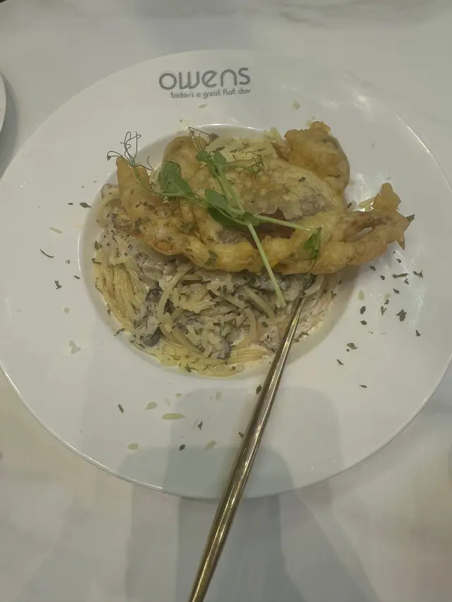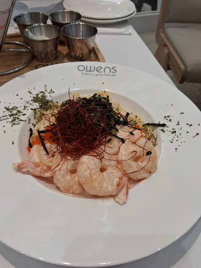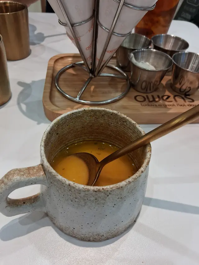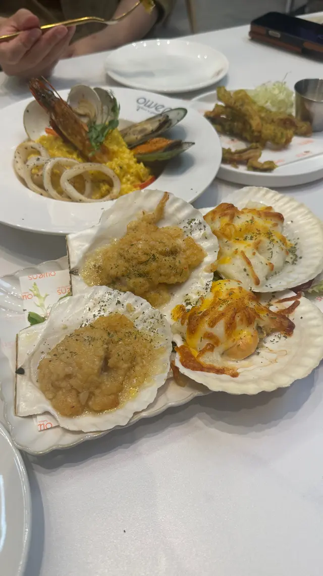 #pb食在屯門 #pbcafe系列 屯門新開高質抵食咖啡店☕️Owens一向係太子都好出名、好受歡迎成日大排長龍😍 繼上年9月係將軍澳開設第一間分店 今年暑假又再係屯門Vcity開設第二間分店👍🏻 新分店以木系、白色裝修 環境好大 主要分左兩邊🤪 商場邊位置較多 座位比較密集 另一邊望住馬路 有自然光配搭 座位較闊落🤪 呢排暑假平日下午去到都好多人排隊 幾受歡迎🥰.Lunch Set有9款選擇 有沙律、Pasta、ADB、扒類選擇😋 價錢$62-132不等 包餐湯/沙律、飲品 幾抵食👍🏻 另外佢仲有Cake Set 一款甜品(蛋糕、心太軟、窩夫、Tiramisu等)加飲品 價錢$58😍 🔹法式蟹肉龍蝦湯🦞龍蝦湯口感偏杰身 味道好濃😋🔹脆炸魷魚鬚🦑推介❤️ 口感香脆 味道唔會過鹹👍🏻🔹芝士&蒜蓉焗扇貝🐚推介❤️ 一上枱已經聞到好香😍 蒜蓉味好香濃 芝士味相對味道較淡🤪🔹明太子海蝦意大利粉🍝相對比較失望🥲 佢用左明太子沙律醬去煮個意粉 而唔係忌廉 所以整體味道偏酸😢 本身意粉、蝦嘅口感係唔錯🥹🔹香烤雞扒全日早餐🐣推介❤️ 呢份ADB入面有烤雞扒、烤啡菇、法蘭克福腸、烤蕃茄、炒蛋、哈密瓜、Sourdough、田園沙律 幾足料👍🏻 雞扒、法蘭克福腸煎得剛剛好 肉質仲好嫩滑、juicy😋 最特別係佢有哈密瓜 最後食有種解膩嘅感覺😍🔹自家製蛋糕 - 草莓忌廉蛋糕🍰推介❤️蛋糕口感鬆軟 就算中間有層cream都唔會好漏😋🔹黑芝麻麻糬提拉米蘇🧁推介❤️ 呢款係季節限定味道Tiramisu每日新鮮製作👍🏻 黑芝麻味超香濃 一食就feel到用左好多黑芝麻 食到最後會食到微微咖啡味😍 Tiramisu中間有層麻糬 口感軟糯 好好食😋🔹陽光 · 燦爛🍹柚子、蜂蜜梳打味道好清新 岩哂夏天飲👍🏻🔹凍榛子鮮奶咖啡☕️榛子、咖啡味都好突出 超香濃😍.整體✨ 歡迎Owens黎到屯門Vcity😍 新分店環境好大、好舒服 平日下午都大排長龍🤪 Lunch Set、Cake Set價錢好抵食👍🏻 食物質素唔錯 甜品好出色😋 相信一定會好受大西北人歡迎🥰Owens (屯門) · 🤝🏻🤪屯門鄉事會路83號V City地下13及15號舖…查看更多