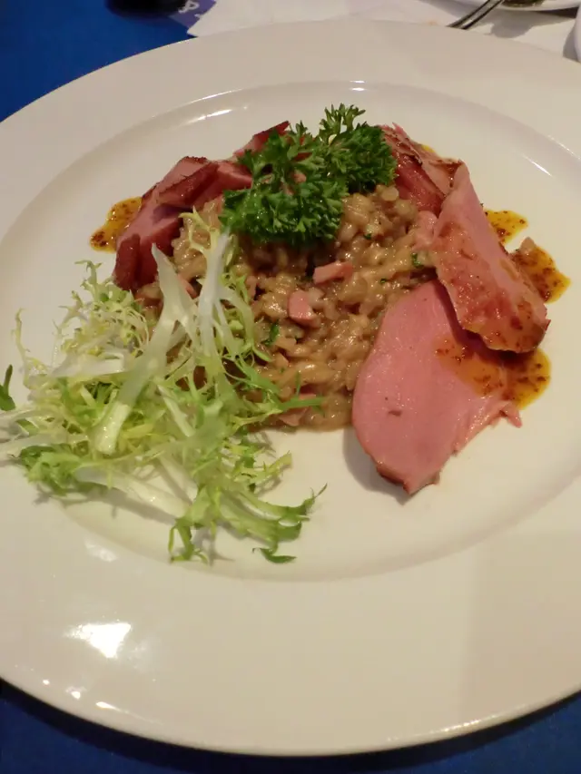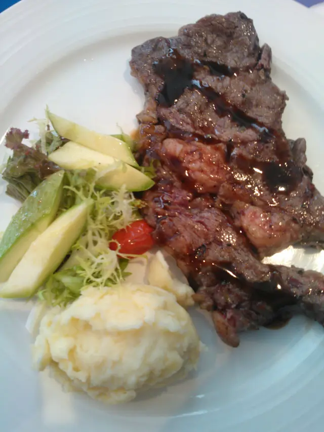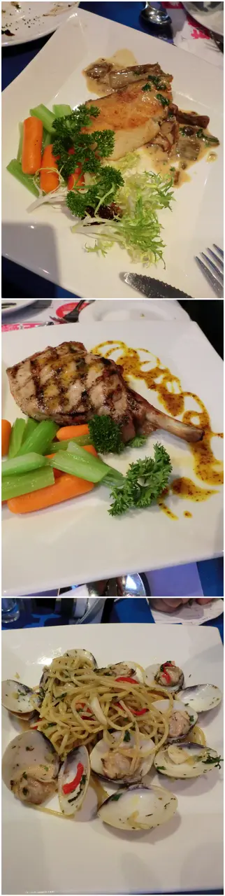 香煎白鱈魚+美國黑豬扒蜜糖芥末子汁+香蒜蜆肉意大利粉