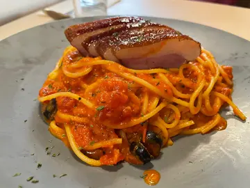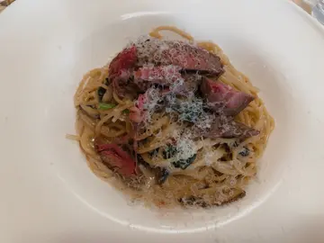 我就叫左lunch set,$89左右,有杂菜沙律,餐汤同香煎西冷大啡菇意粉,沙律同餐汤ok既,意粉系好食既不过西冷就有少少韧同份量少食嘢途中,啲员工对住啲一早book好枱既顾客就服务态度好好 ,对于我呢啲walk-in顾客就晒啖气,好似多我一个walk-in客都唔care,凭咩仲要收我10%既服务费