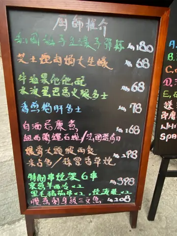 首先,呢个黑毛猪芝士粒,应该系想模仿了结糖,但其实芝士同花生,柿粒一啲都唔夹,而且menu写系有黑毛猪,我预期佢系一块块既黑毛猪片,点知只系黑毛猪粒。冇记错呢个好似系$118,咁嘅价钱我可以买到好多粒了结糖食,呢个菜式真系唔识欣赏🙂个人觉得好难食另外,海胆阔条面,阔条面嘅味道还好,但海胆好腥。仲有一个炸鸡翼配泰式辣酱,呢个系唔错,鸡翼仲系既炸既,上枱热辣辣。最后仲有食咗卡邦尼,味道中规中矩,卡邦尼都好难整得难食。总结,冇下次🙂…查看更多
