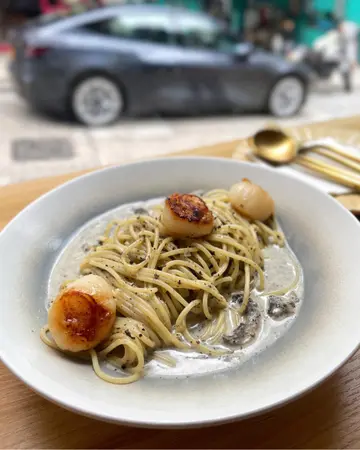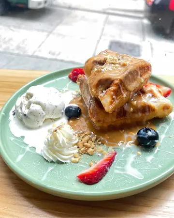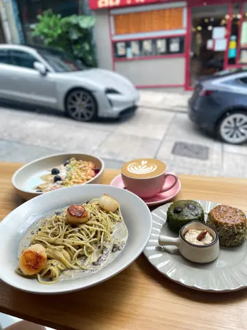 最近食咗呢间评分好高既cafe我已经短时间内第二次覆桌🤩英式松饼配玫瑰蜂蜜坚果酱 $58我拣左川宁伯爵茶同宇治抹茶配朱古力粒松脆的松饼带著牛油香,再配上自家制玫瑰蜂蜜坚果酱🍯几特别又唔会太干💯🌈彩虹乳酪 $98有奇异果🫒蜜柑、香蕉🍌蓝莓🫐同埋石榴个乳酪系用蝶豆花整既浅蓝色🩵成个颜色配搭好靓 好似个沙滩咁🏖️啲水果都好新鲜 做前菜唔错 几开胃😋🍝带子黑松露蘑菇意粉 $138黑松露味香浓,带子大大粒,煎得微微焦香磨菇、洋葱配埋忌廉汁,令意粉更香更好味👍🏻🍹Passion Fruit Soda $58健康嘅热情果,口感清新,唔会太甜啱晒夏天嘅天气饮💛花生酱炼奶牛角包窝夫配雪糕 $78牛角包窝夫加上大量花生酱同炼奶伴球曲奇忌廉雪糕同忌廉,加上蓝莓同士多啤梨😈好邪恶好好味🤤🤤🤤…查看更多