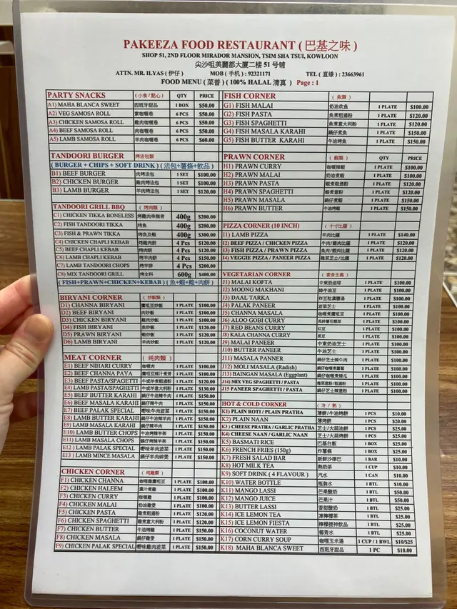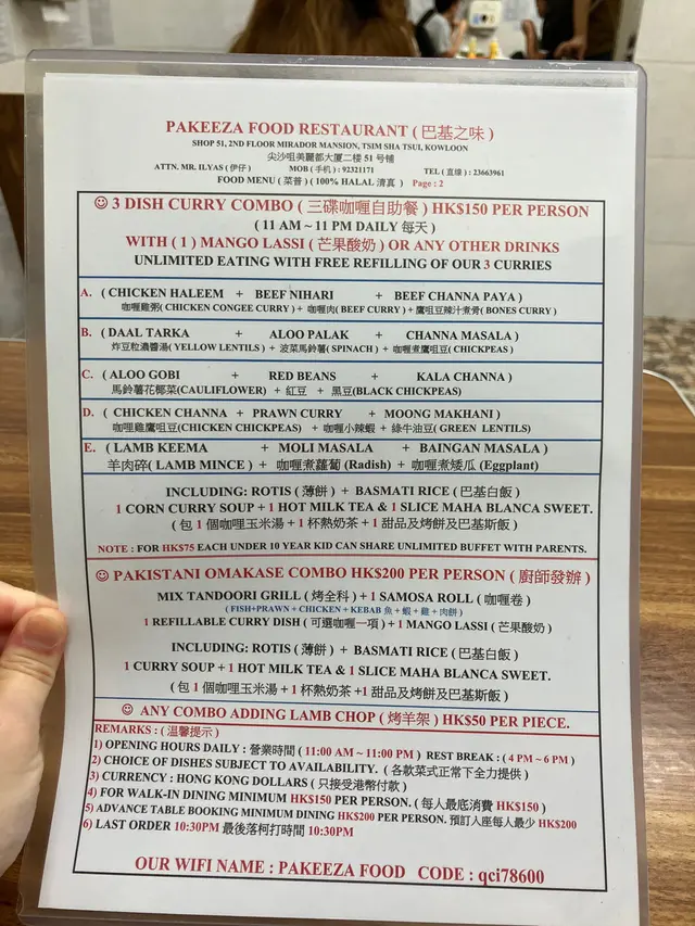 Pakeeza Food Restaurant (尖沙咀) 网上订位即赚Rice Dollars 网址: https://s.openrice.com/QrLS0w0WC00 地址: 香港尖沙咀彌敦道58號美麗都大廈2樓51號舖 电话: +852 92321171