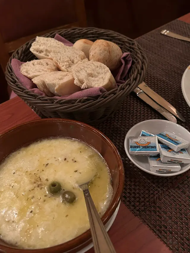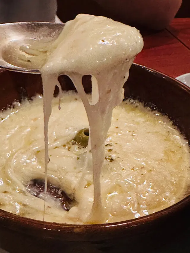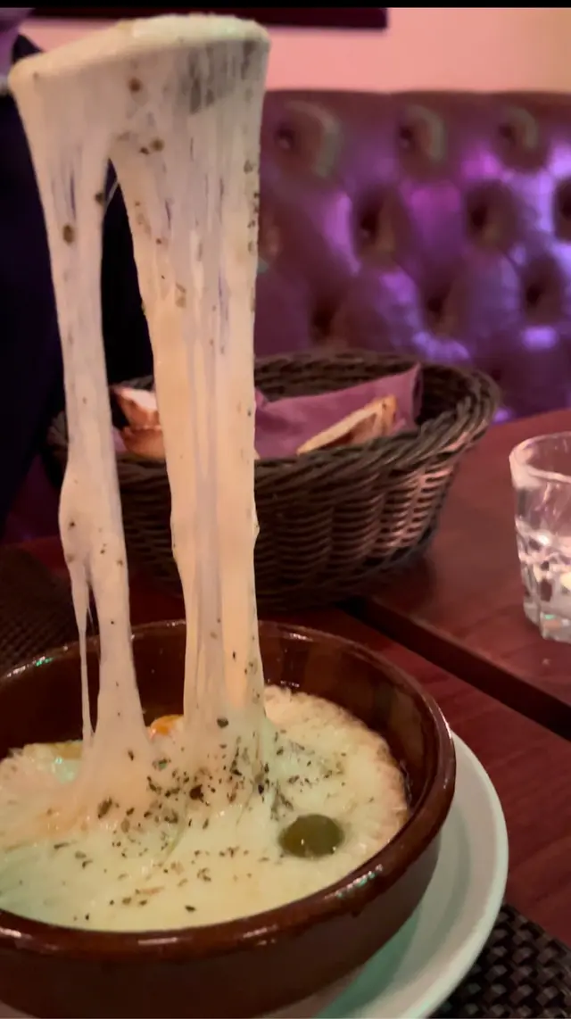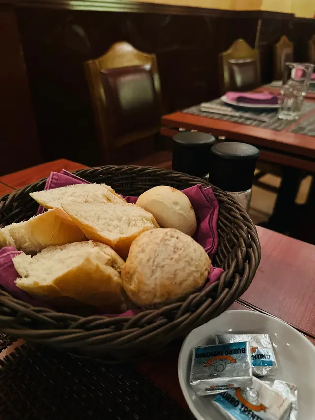 今晚和兒子去蘇豪區吃阿根廷菜。我倆都是第一次吃阿根廷菜,心情相當興奮。餐廳的裝潢以黃色和啡色為主,搭配柔和的燈光和輕柔的音樂,營造出一種舒適而愜意的氛圍。牆壁上的掛畫更是增添了南美風情,讓人彷彿置身於阿根廷的某個小鎮,與中環的喧囂形成鮮明對比。餐廳內還有一個自助沙律吧,有新鮮的蔬菜、很多果仁、豆類、蕃茄和各式沙律醬,可以自由配搭,選擇也多。沙律的蔬菜非常新鮮。我們選了ENSALADA DE LA CASA。有Mixed Lettuce, Cucumber, Red Onions, Cherry Tomatoes, Croutons & House DressingHOT APPETIZERPROVOLETA (Melted Provolone Cheese with Green Olives and Herbs)Provoleta是阿根廷傳統菜式。這道烤得金黃拉絲的Provolone芝士,搭配綠橄欖和香草,香味濃郁,焗溶後的芝士可以拉很高的絲,鹹鹹香香的,邊位凝固成脆邊,蘸着麵包吃,讓人一口接一口,完美啟動味蕾。法式麵包籃鬆軟的法式麵包,熱騰騰的、香脆的、充滿香草味,外脆內軟。配合烤得金黃拉絲的Provoleta 芝士,令我們吃不停口。我總共吃了三個包!主菜BIFE DE OJO(Ribeye Steak頂級阿根廷草飼牛扒)阿根廷牛排大致分為三種:里脊肉、肉眼和西冷。我們選擇了五成熟的阿根廷草飼肉眼扒。肉眼扒肉質柔嫩Juicy多汁,外焦內嫩,牛肉的鮮香味道令人難以忘懷。肉中間非常粉嫩,不會韌,肉味突出。牛味濃郁得其實不用再加多醬汁!搭配的黑椒汁和蘑菇汁各有特色,黑椒汁的層次感更強,有不同粗幼嘅黑椒粒營造層次;而蘑菇汁則充滿蘑菇味,為整道菜帶來了香氣。其實兩款都是Gravy,有牛肉味。所以我們都把醬汁吃和清光!還有creamy十足的忌廉波菜作為配菜,整碟牛扒實在太好吃了!SUPREMA NAPOLITANADeep-fried breaded Chicken Fillet covered with Tomato Sauce, Ham & Mozzarella Cheese, served with French Fries.傳統阿根廷菜式,吉列無骨雞扒。炸雞排上蓋著番茄醬、火腿和馬蘇里拉芝士,搭配薯條,口感十分豐富,火腿的鹹香和雞肉的嫩滑結合得恰到好處,意想不到的好吃。甜品Apple Pancake Flambé served with Ice Cream這道甜品的視覺效果令人驚豔,當店員用火燒熱pancake時,視覺效果真的十分好。蘋果不太甜,pancake口感鬆脆,最後配上雪糕,雖然我們已經很飽了,但還是忍不住把它吃掉!飲品Gunner & Fruit Punch 無論是前菜、主菜還是甜品,每一道菜都充滿了南美的獨特風味,在這特別的環境吃特別的菜式,我們都吃得非常愉快,滿足。…查看更多