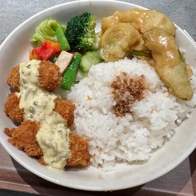 喺中大行萬倫學生中心2樓入邊嘅paper and coffee Cafe已經想試好耐!以大學嘅Cafe嚟講水準非常高!日式餐有唔同嘅選擇,我今日就揀咗野菜加雞扒!我朋友就揀咗野菜飯加法式牛肉!野菜係好多唔同嘅雜菜新鮮高質素,但個人口味覺得太清淡,加咗一啲鹽之後就即刻變得好好味!其他餸包括豆腐,煎雞扒都值得推薦,今日未試傳說中嘅炸雞,下次可以試!法式牛肉都有驚喜,而且份量所有份量都好多,十分抵食!