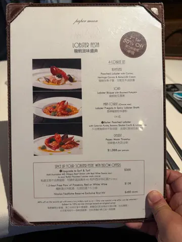 This Italian restaurant is located at Ocean Terminal Extension (OTE) and having just visited another Italian restaurant a few days ago, it is unavoidable we would compare the two. Unfortunately, this one is inferior in most respects.Seated at a table on the window side, the breathtaking view of Victoria Harbour is certainly a selling point for the restaurant. When weather permits, the seating on the balcony offers another good option to experience the amazing view in even better way.The décor is neat, and apart from the large windows facing the harbour, the other walls display some nice black-and-white photographs, creating a nice ambience which is comfortable and relaxing.We order the Lobster Festa menu ($1,088 each, with 50% off for the second set). To start with, I have 3 Oysters ($178). They are quite big, fresh and with a nice briny taste. A squeeze of lemon juice helps to brighten the acidity.The first course is Appetizer, featuring Poached Lobster with Caviar, Heritage Carrots and Buttermilk Cream. The claw and lobster tail does not have much taste on its own unfortunately, and even with the caviar and dressings it did not help much. The carrots are also a bit too hard and would be ideal to cook slightly longer. Not a good start to impress.The second course is Soup, featuring Lobster Bisque with Roasted Pumpkin. While the soup is served steaming hot, which meets my most basic requirement, with also good intense flavours, it was not as complex as the one I had a few days ago. The lobster meat are tiny and has a bit of fishy taste.For the Main course, my wife has Lobster Fregula in Spicy Lobster Broth, while I go for Butter Poached Lobster with Celeriac Puree, Banana Shallot Confit & Lobster Jus, plus the upgrade of Australian M5 Wagyu Beef Sirloin with Red Wine Sauce ($300 additional). There are abundance of lobster meat in the pasta, but the taste is rather mediocre.The ‘surf and turf’ I have, apart from lobster, included also red prawn and sirloin steak. The lobster compared with the appetizer is better in seasoning, while the beef is reasonably done too. It does not give a big wow to the palate but is decent in flavours. But I am not sure I will call it good value to pay the additional to have the steak.Finally, the Dessert is Paper Moon Tiramisu. Following the traditional recipe, the tiramisu is good in taste, with the mascarpone rich and delicious, the ladyfinger at the bottom soaked in espresso to give the bitterness to balance the sweetness of the mascarpone, and the cocoa powder on top wrapping up nicely.Service is good, with the staff attentive and cheerful. The restaurant is quite busy for a Wednesday evening, which is a good sign. However, with the bill on the night at $2,461 it is not exactly good value, considering there is already 50% off for the second set. It is clear which one I would recommend among the two Italian restaurants I visited this week.…查看更多