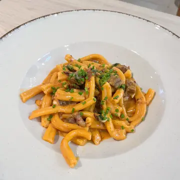 西环高质手工意粉店🍝Bookmark左呢间手工意粉店好耐 终于的起心肝去食 结果觉得太迟先认识佢🥹 佢11月25日就会结业 依家只系供应晚市 大家想食最好就打电话 / WhatsApp问一问先🤪 佢位于坚尼地城山市街 距离地铁站5-10分钟路程👍🏻 店内装修用色柔和 环境唔大 只有4张枱 由两人主理🥰 .晚市有2人餐Menu 价钱$890 包沙律、前菜、汤、一款意粉、一款主食、甜品😋 不过我地想食多d手工意粉 所以就散叫左🤪 每一款意粉 / 主食都可以加$150转一人餐 包前菜、汤、甜品👍🏻✨Starter✨🔹是日餐汤🍲🔹PDS鲜鱼汤🐟推介❤️ 是日餐汤系蕃茄汤 而鲜鱼汤就系加鱼肉再煮😋 两款汤都好好饮👍🏻 蕃茄汤好甜 唔会好酸 而鲜鱼汤就再多左层鲜味 仲食到少少鱼肉😍🔹烤牛骨髓,肉酱,西班牙手工面包推介❤️ 见到牛骨髓已经好吸引😍 牛骨髓加上少少肉酱烤过后味道好香 口感好滑😋 就咁食都已经好正👍🏻.✨Pasta✨🔹麻香牛肉粒双糟粉,流心芝士🍝推介❤️ 麻香味好重 但唔系辣 会愈食愈上瘾🤪 双糟粉索哂汁 仲有微微流心冲芝士 好正😋 原本系烟熏鸭肉 当日转咗牛肉粒 同样好淋、好惹味👍🏻🔹墨鱼,蛋黄,海藻意式云吞皮,瑶柱牛油汁🥟推介❤️ 估唔到云吞皮系一块块咁上🤪 云吞皮口感好弹牙 完全唔会食到粉团嘅口感👍🏻 墨鱼都好爽口 配埋蛋汁、瑶柱牛油汁食 口感好浓郁、好rich😍.✨Dessert✨🔹开心果雪糕,牛角包鸡蛋仔💚🔹PDS豆腐提拉米苏🤍两款甜品相对冇咁出色🤪 开心果雪糕唔算好浓 牛角包鸡蛋仔好酥脆 但略嫌厚身🥲 豆腐提拉米苏口感好似豆腐 好滑👍🏻.整体✨ 呢间位于坚尼地城山市街嘅手工意粉店开业多年 佢将于11月25日结业🥹 店内环境唔大 只有4张枱🤪 佢嘅前菜、汤、手工意粉都好高质😋 我同男朋友都好满意 边食已经决左要系佢结业之前再去食多次❤️Pasta de Show (西环)西环坚尼地城山市街1C号地舖…查看更多