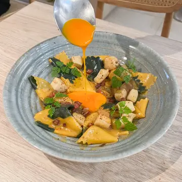非常有诚意意大利菜小店,主打每日新鲜制造手工意粉,严选意大利00面粉及意大利蛋,务求造出意大利正宗口味!! 🧑🍳- 大闸蟹粉手工饮管面 HK$240 🦀🍝超浓郁鲜味!!甘香大闸蟹粉,配上手工饮管面简直天衣无缝!!意粉充满面粉香及蛋香,手工面独有的弹牙口感绝值一试难忘!!- 三文鱼腩片,香草明太子酱,手工意大利粉 HK$150 🐟🍝油香散发三文鱼!!炙烧三文鱼腩片非常肥美,加上香草明太子酱清新咸香,层次感丰富又鲜香。手工意粉同样口感弹牙又挂汁,完美!!- 牛油果椰菜丝沙律 🥗清新开胃沙律!!巴马火腿发牛油果配搭经典椰菜沙律,咸香又清新!!- 龙虾椰菜花汤 🦞🥦🍲餐汤心思十足!!顺滑香甜椰菜花汤与香浓龙虾精华互相融合,质地丰厚味道香浓。- 热洋甘菊茶 🧊🫖茶杯配有杯盖非常保温,在餐后仍可享用热茶,超贴心!!…查看更多