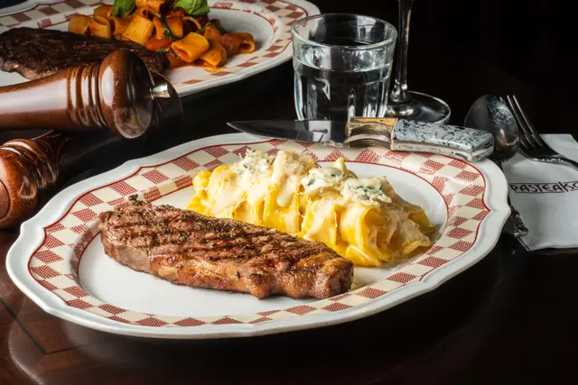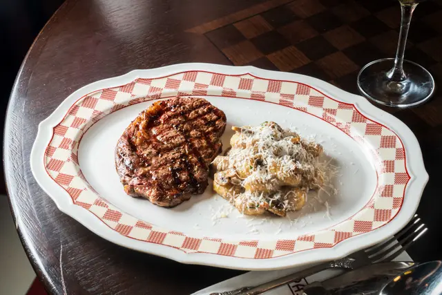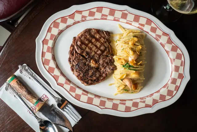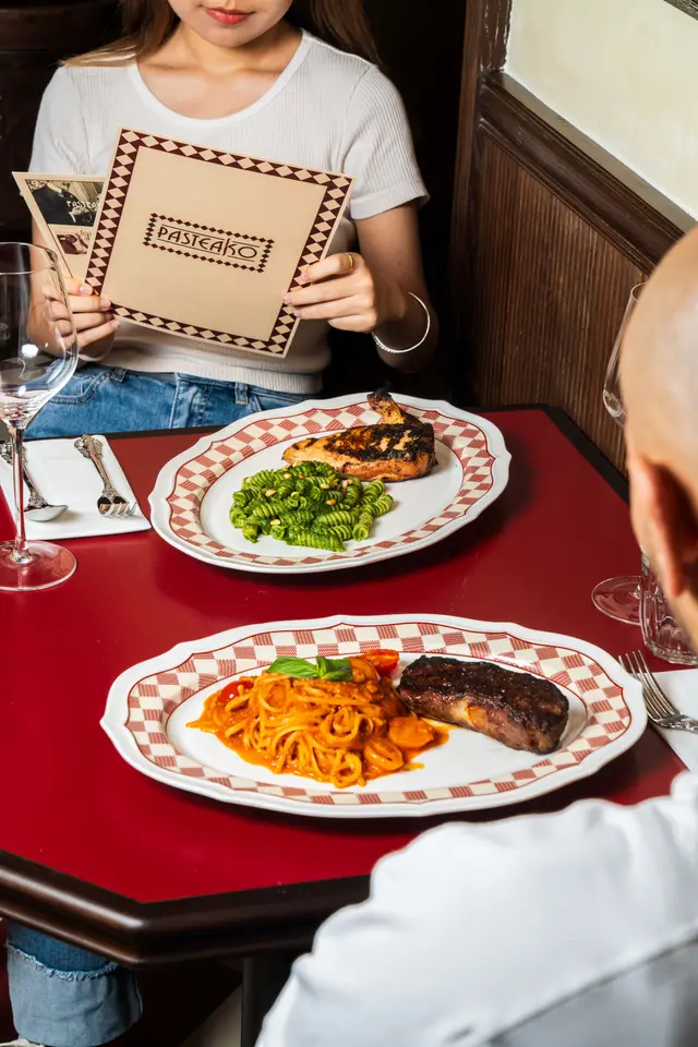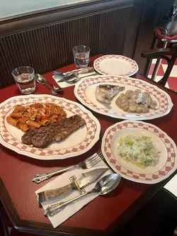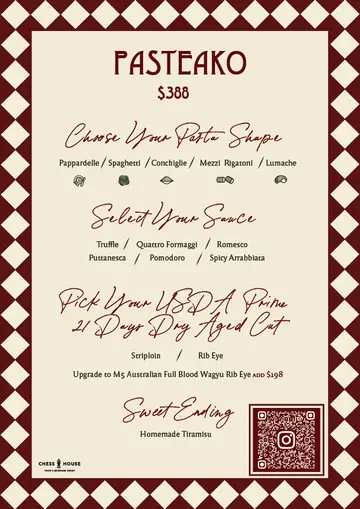被这家隐藏于PMQ的意式扒房惊艳到!星期六中午来和朋友吃birthday lunch,全店只供应一套$388 +10% 套餐,却完美融合手工意粉自由+干式熟成牛扒+仪式感甜品,庆祝生日/纪念日性价比之选💫 记得提前预约⏰🔪先选牛排刀牛排刀有8款,客人要在入座前门口的展示柜先选好牛排刀,仪式感满满☺️🥗沙津吃肉类和大量淀粉质前先吃点新鲜沙律菜,有助肠道消化吧🤣🍽️自选意粉形状 5选1宽面Pappardelle/ 义大利细面Spaghetti/ 贝壳面Conchiglie/ 中型通心粉Mezzi Rigatoni/ 蜗牛面Lumache🍽️自选意粉酱汁 6选1松露酱Truffle/ 四重芝士酱Quattro Formaggi/ 罗曼斯可酱(红椒) Romesco/ 烟花女酱(番茄、黑橄榄、鳀鱼) Puttanesca/ 番茄酱 Pomodoro/ 辣味阿尔巴塔酱Spicy Arrabbiata🍝手工意粉任食上述的自选款我们拣了松露贝壳面和四重芝士宽面,酱汁非常香浓,意粉非常挂汁。店员还会不时捧着一大盘新鲜出炉的意粉问客人要不要加添,口味是厨师随机烹煮的。我们也加了4次,那个青酱和不知是蕃茄还是红椒酱也是十分惹味🤤🥩USDA Prime级熟成牛扒2选1西冷Striploin肉香浓郁带油边;肉眼Ribeye油花均匀,推荐5成熟😍🤎手工提拉米苏由店员拿着一大盘分配给每个客人,然后再拿原件朱古力洒上朱古力碎,咖啡酒味平衡不死甜😊🎂生日专属仪式感店员齐唱生日歌送上插著蜡烛的Tiramisu,这个附送的Tiramisu跟跟餐的那个有点不同,因为是冷藏过,所以香味更加明显😋…查看更多