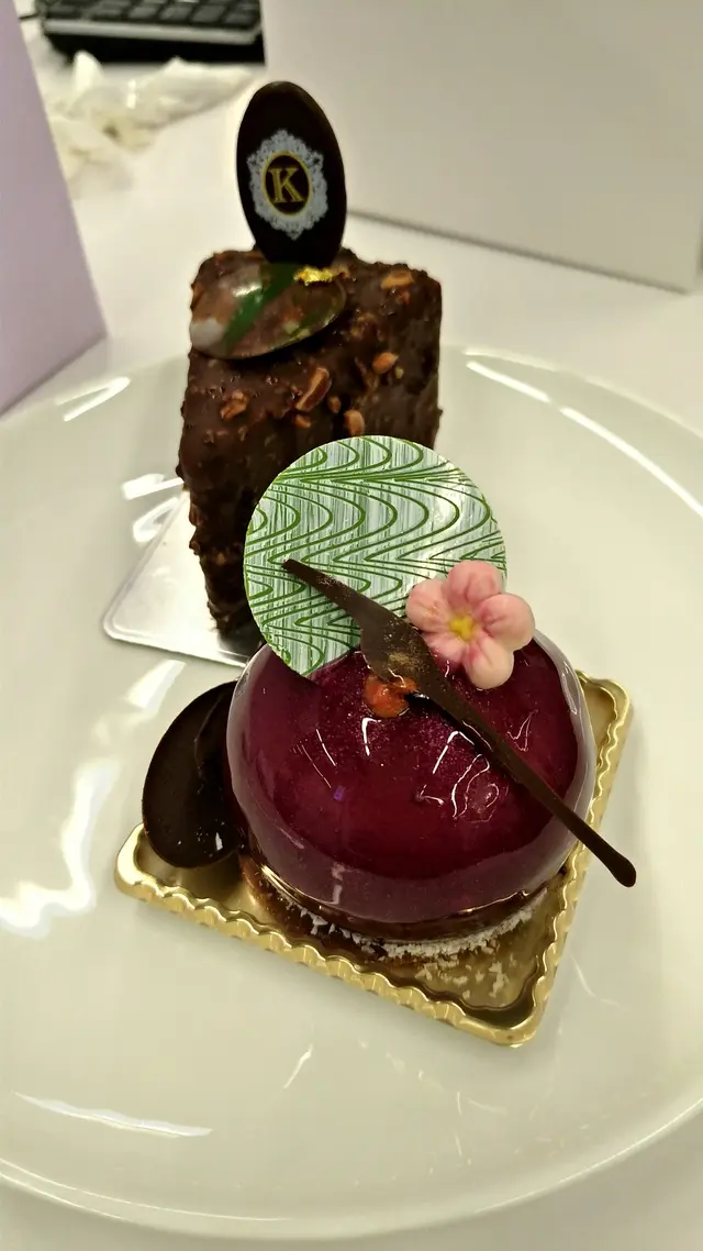 同事仔生日、決定想買個特別啲嘅蛋糕!見到patisserie Jeffery 的蛋糕非常特別、純粹因為比佢嘅樣貌非常吸引,所以買了!希望同事會鍾意!因為我趕住返工嘅緣故!等唔切生日蛋糕上寫名!職員很好、幫我放了一個心形的Happy birthday牌!好有心思!今次選擇了朱古力脆脆的蛋糕!加上有海鹽焦糖炮谷!蛋糕賣相吸引之餘,味道亦出乎意料好味!果種好味唔單止唔會太流而且亦都唔會太甜!最後生日嘅同事仔都非常鍾意呢個蛋糕!覺得又睇得又食得!不過價錢就有啲貴!…查看更多