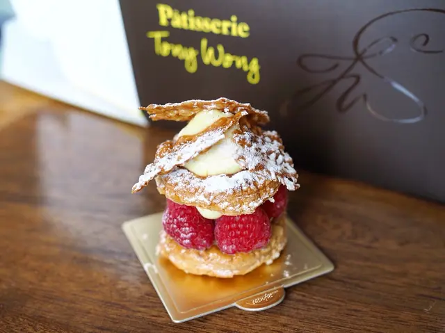 Ruby Diamond.還未有錢買鑽石 就先買顆能吃下的吧😌 通常這種外表豔麗的蛋糕 味道都不太好 這款卻不錯! 弄碎朱古力外層 內裏是幼滑的cream 還有藍莓醬 酸酸甜甜的Raspberry Napoleon.Tong Wong的拿破崙挺有名氣😌 酥皮的確層層鬆化 富牛油香 即使買了回家 數小時後才吃 也不會淋掉 依然脆口 不錯 raspberry也很新鮮😋查看更多