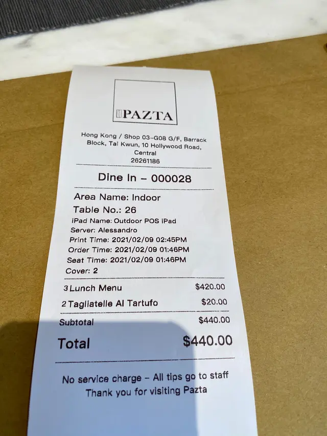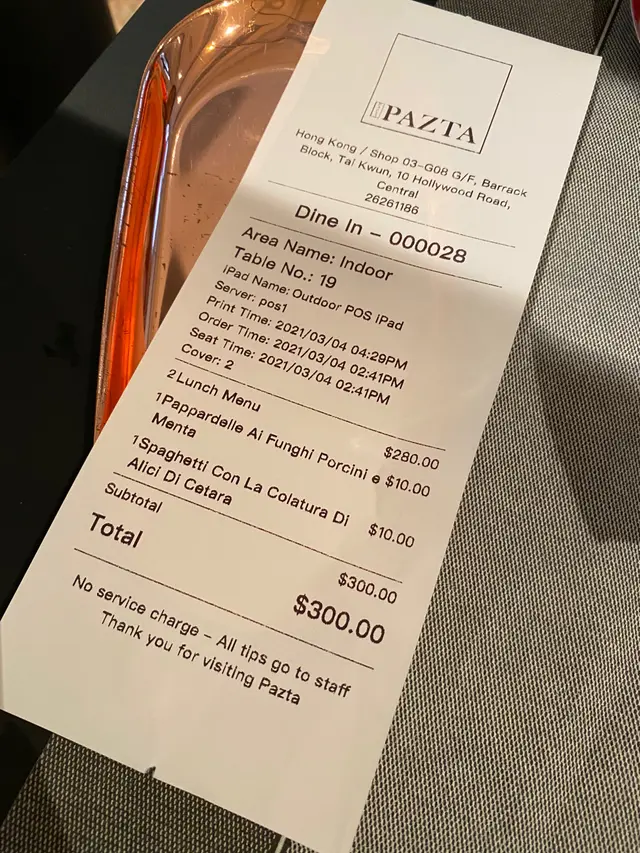 PAZTA (中环) 网上订位即赚Rice Dollars 网址: https://s.openrice.com/QrLS0v7qA00 地址: 香港中環荷李活道10號大館03座營房大樓地下G08號舖 电话: +852 26261186