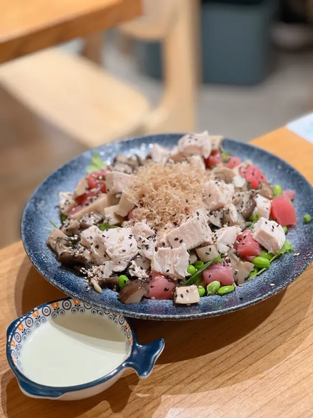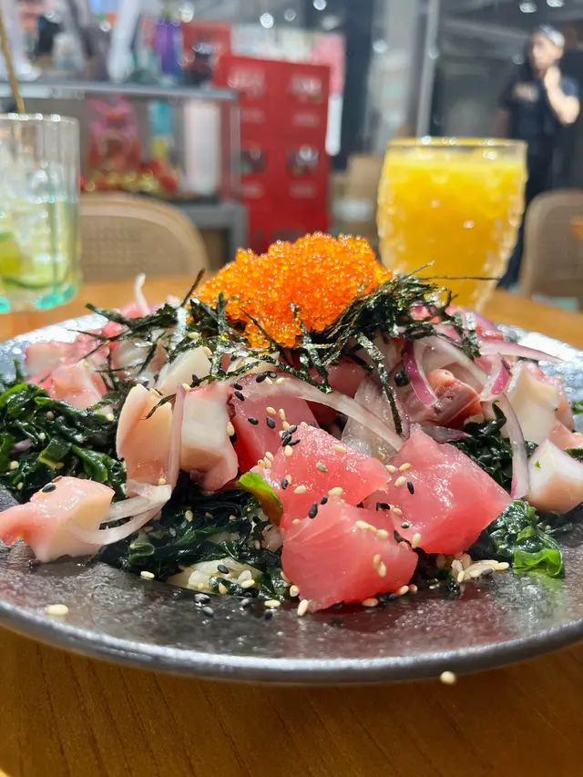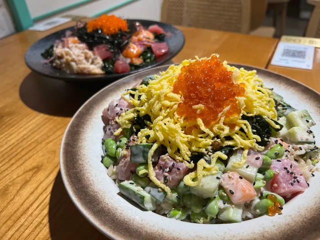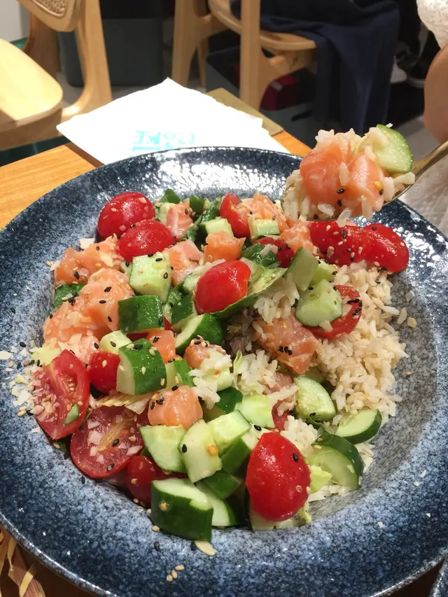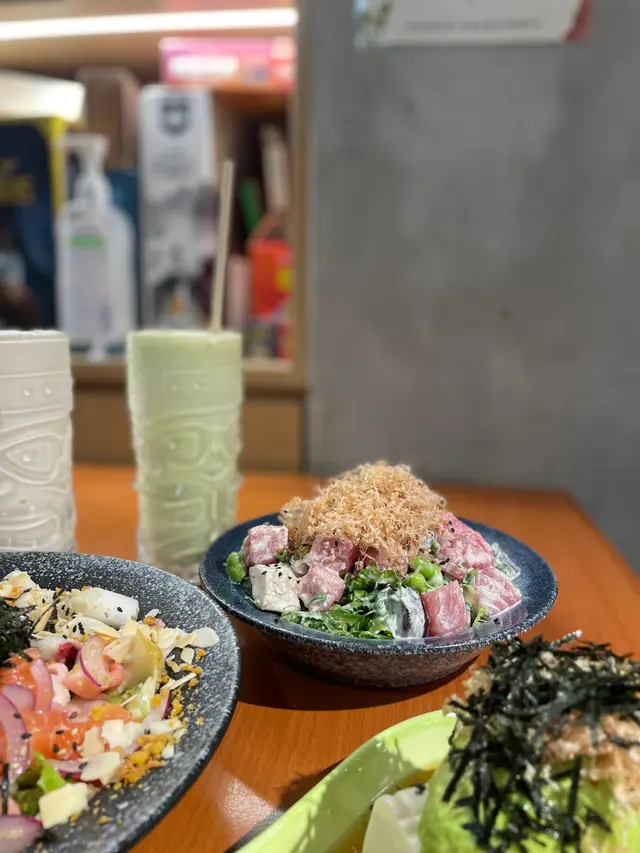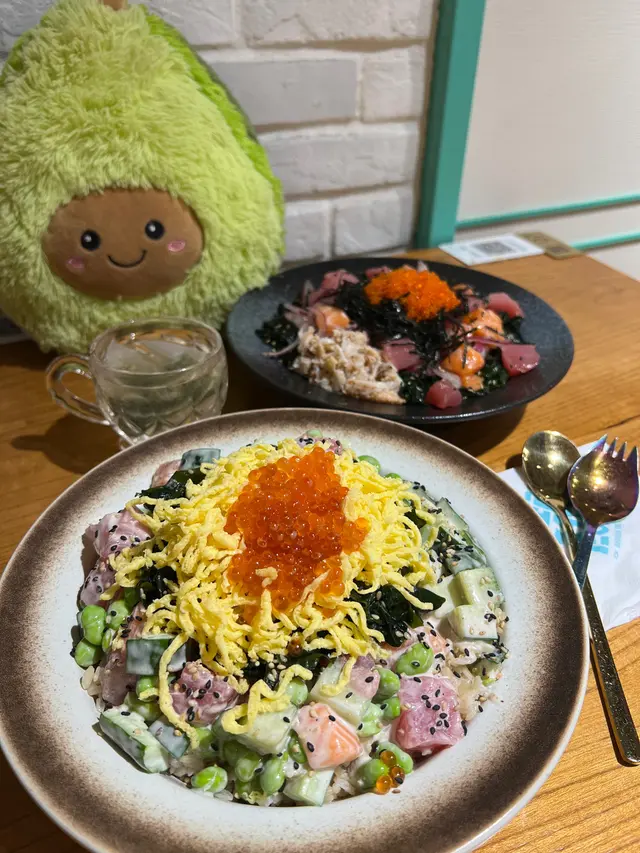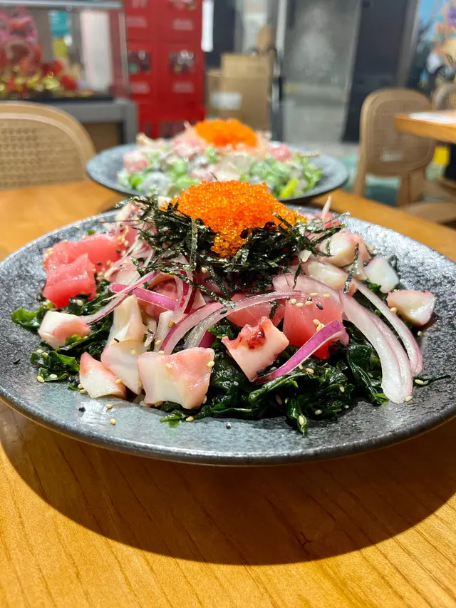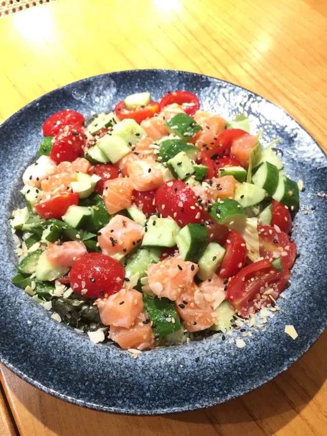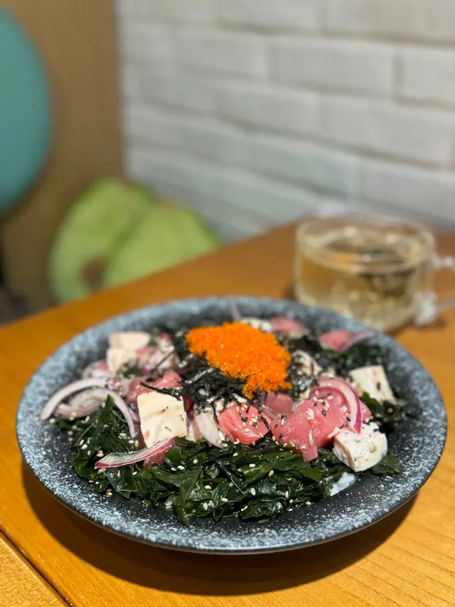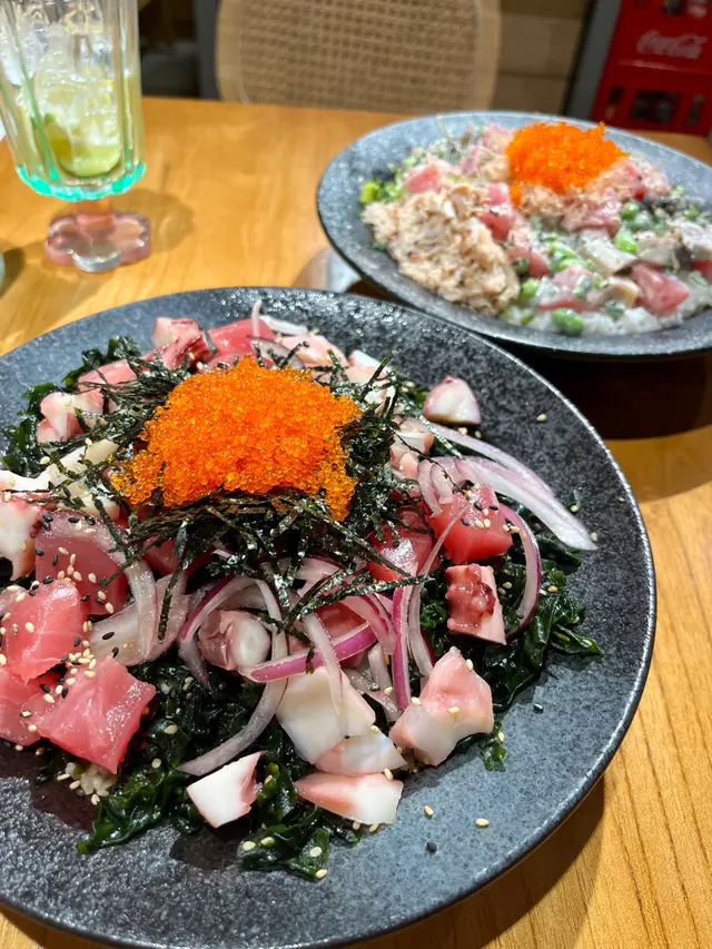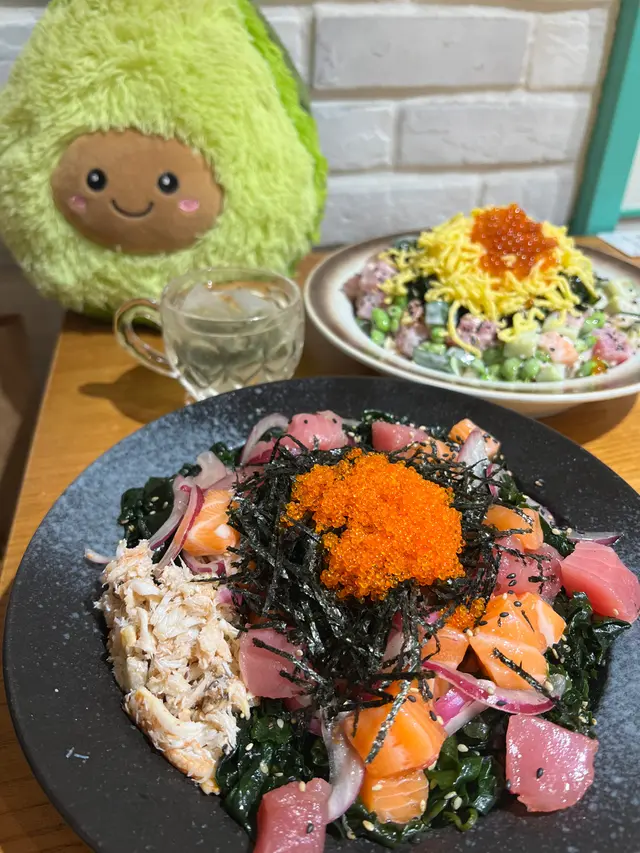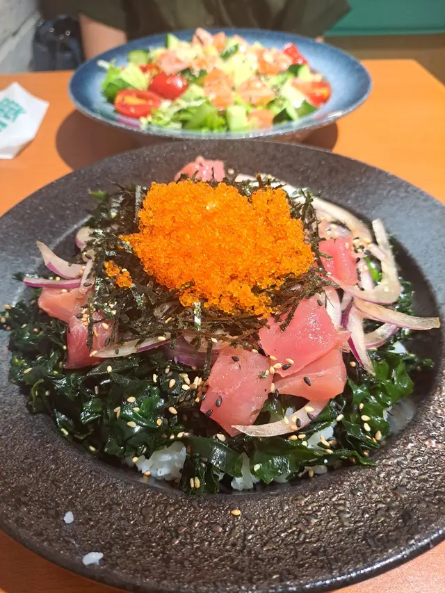 未試過呢間,lunch見無麥人,想食清清地就入去食啦。係門口問係咪有Mini bowl,答完佢問我堂食定外賣。當下我望緊幾錢,個店員等左兩秒就唔耐煩咁行開左。等佢掃哂枱先番黎。今次叫左夏威夷風味 半飯半沙律$68 + $8 橙汁下午茶黎講偏貴但諗住試試啦~坐低卡位張櫈見到有幾粒蟹籽,想掃走佢但張櫈係乳膠質地咁好啜,掃極都痴住係度。好快就上枱,個樣幾靚既但d海帶多到cover哂下面,都唔知下面係飯定沙律。食落口陣魚腥味好重,食得出食唔新鮮既。
