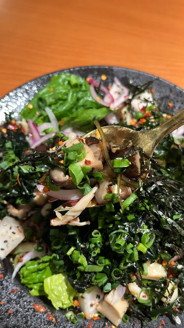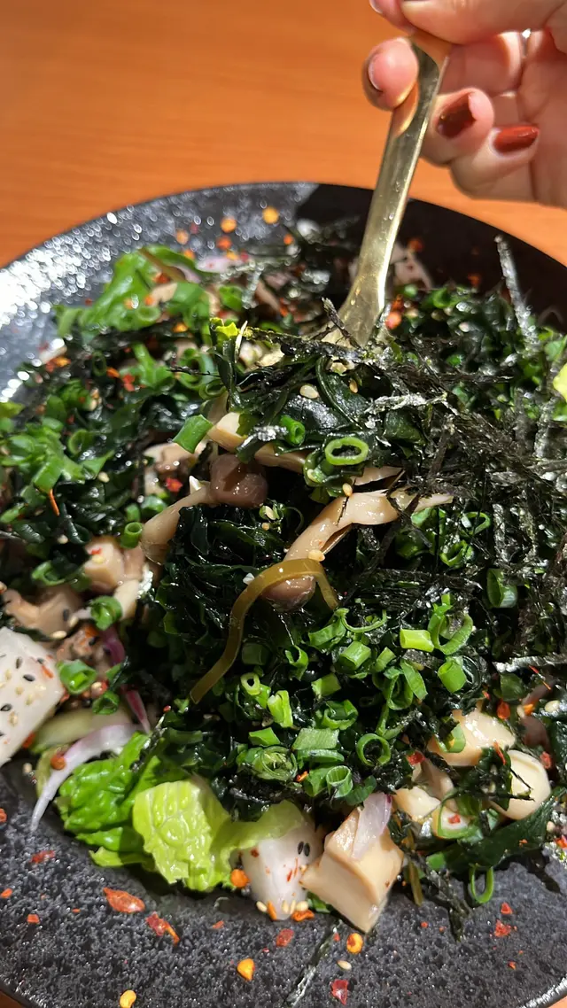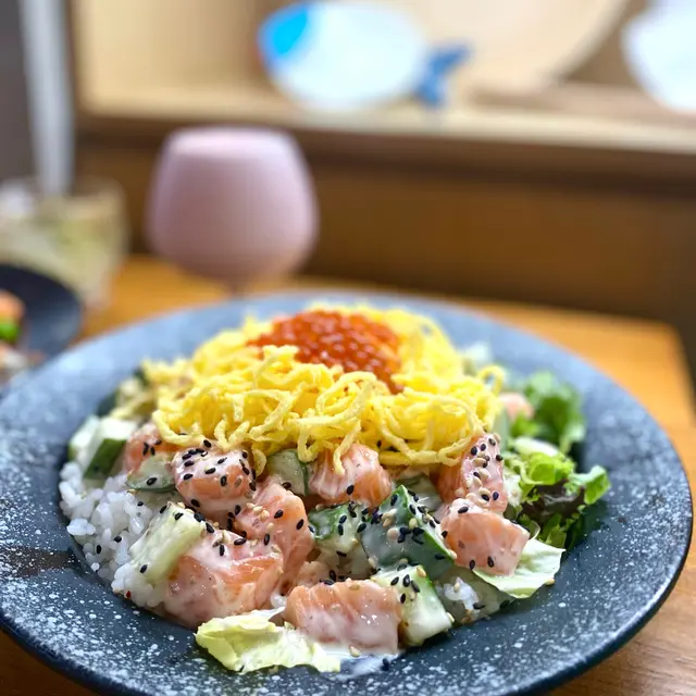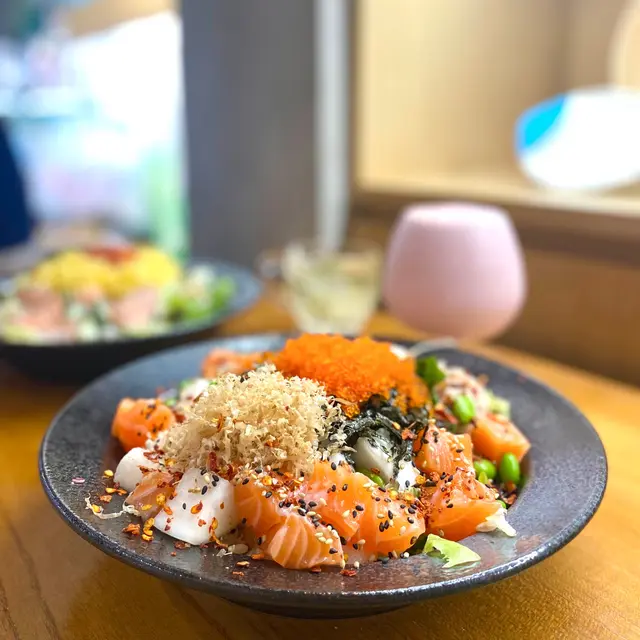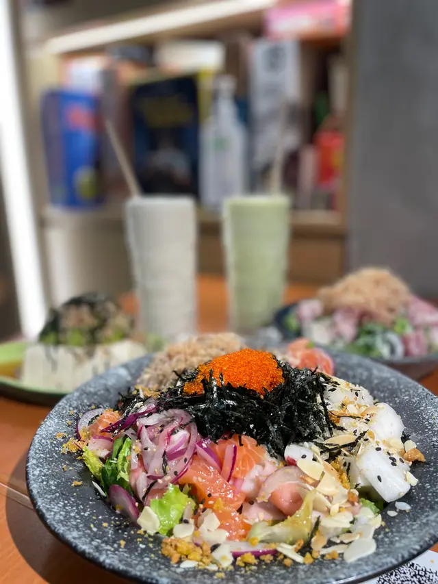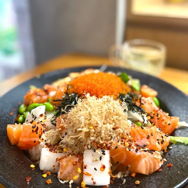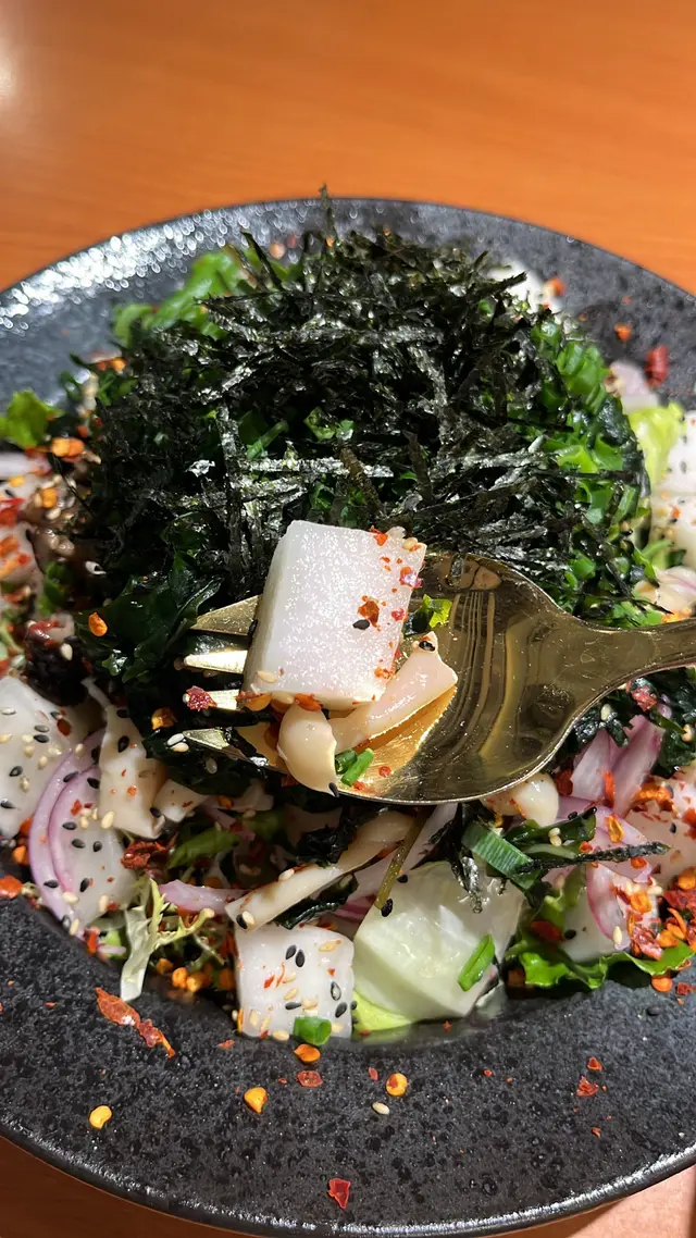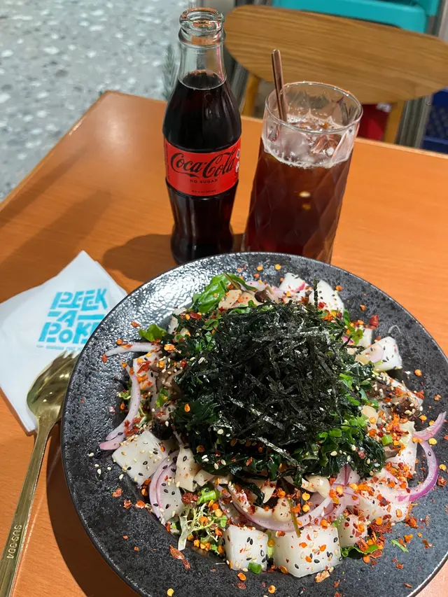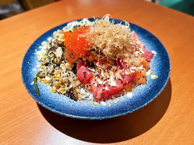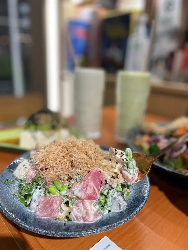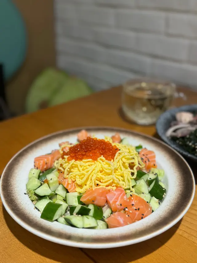 未試過呢間,lunch見無麥人,想食清清地就入去食啦。係門口問係咪有Mini bowl,答完佢問我堂食定外賣。當下我望緊幾錢,個店員等左兩秒就唔耐煩咁行開左。等佢掃哂枱先番黎。今次叫左夏威夷風味 半飯半沙律$68 + $8 橙汁下午茶黎講偏貴但諗住試試啦~坐低卡位張櫈見到有幾粒蟹籽,想掃走佢但張櫈係乳膠質地咁好啜,掃極都痴住係度。好快就上枱,個樣幾靚既但d海帶多到cover哂下面,都唔知下面係飯定沙律。食落口陣魚腥味好重,食得出食唔新鮮既。