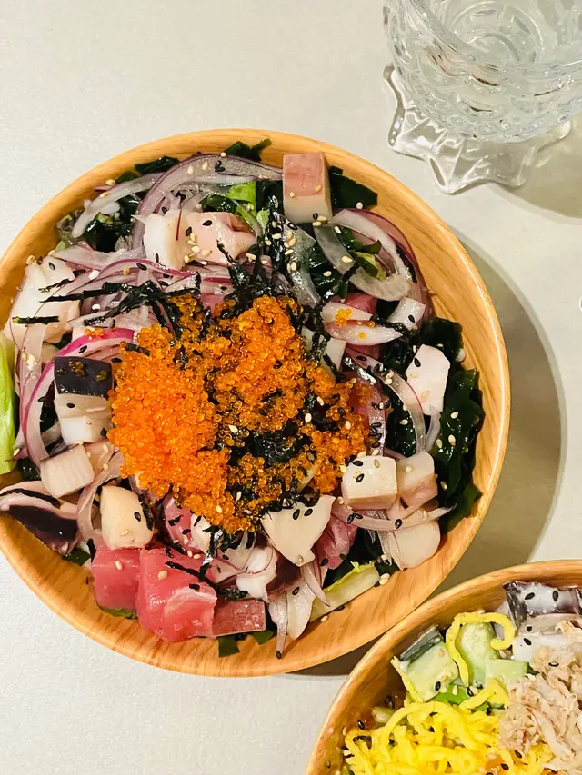 同朋友喺銅鑼灣做完gym之後,嚟到hysan食poke bowl鬼佬魚生飯🥣 健康得嚟又可以補充蛋白質同體力👍🏻👍🏻分別揀咗【夏威夷風味】💰88好足料👏🏻👏🏻有刺身吞拿魚、新鮮海帶芽、紫洋蔥、蟹籽,配鰹魚醬油~ 底下跟壽司飯,份量多到根本食唔晒😂第二款揀咗【加州風味】💰98刺身三文魚、青瓜、雞蛋絲、三文魚子,配果仁芝麻醬~一樣係揀咗壽司飯底😂根據經驗,其實所有材料都比得好足,如果女仔揀飯底應該真係好難食得晒😂下次都係揀一半飯一半沙律菜😂查看更多