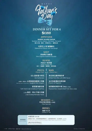 今日同班好耐无见嘅朋友出嚟食饭,朋友提议嚟康怡广场嘅peko peko食晚餐,由于我几个朋友都有选择困难症😅所以我地今次叫几个dinner set一齐share食👏🏻🐟香煎比目鱼定食 $158配精选沙律、时令鲜果、珍珠饭比目鱼味道较淡,煎得唔算好香,整体一般🥩安格斯肉眼牛扒 8oz配 薯角 $248肉眼煎得好香,能够锁住肉汁👍🏻肉质软嫩,好快就比我地清晒碟😂🍝黑松露杂菌露荀意大利面 $128黑松露酱汁好香浓,酱汁份量亦好多Dinner set for two $548 (有85折)Peko拼盘(广岛蚝|葫蔴鸡|海苔鱿鱼|酱油翡翠螺)广岛蚝炸得几香脆,其他无试😅扇贝明太子意大利面除咗肉眼扒之外另一样比我地极速清碟嘅嘢食😂明太子酱汁偏杰,味道香浓,扇贝煎得够香香煎西班牙猪鞍猪鞍好厚切👍🏻肉味香浓,肉质软嫩,调味都几啱我口味😋蘑菇汤饮品…查看更多
