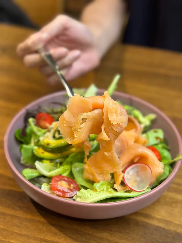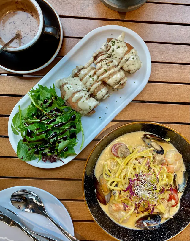 今日放工同朋友嚟到將軍澳海旁 見到呢間Cafe空間感幾大 好似坐得幾舒服 就入咗去試下 嘢食有意大利粉 三文治 pancake 等等 都整得幾靚 而且幾好食 🤪-🦑海苔魷魚 $68海苔魷魚好爽口彈牙 外面食落脆卜卜 另外佢提供左黑松露醬俾我哋點 個醬汁真係好好食-🥑牛油果三文魚碗 $133牛油果好creamy 唔會太生或者太熟 好大份 食完其實都幾飽 另外我哋加咗煙三文魚落去 同牛油果好夾 -🥞牛油果龍蝦沙律pancake $88龍蝦沙律好有驚喜 除咗份量好多之外 佢嘅沙律醬唔會令你覺得好漏 龍蝦爽口彈牙 加上牛油果 估唔到同pancake都幾夾 pancake蛋香味濃 有3塊咁多 點埋楓糖漿咁食 好滿足-🥪雞胸牛油果煎蛋三文治 $108麵包好軟熟 好想再食多次 隻蛋煎到啱啱好 有啲溜心嘅感覺 牛油果同樣都係好creamy -🍝麵豉蟹肉意粉 $118意粉都幾彈牙 蟹肉份量算多 不過蟹柳再多啲就好啦 佢個汁唔係好Creamy 鹹味啱啱好-🍵Green tea latte $45奶味同抹茶味都好濃 而且唔會過甜 拉花好靚🤣-🍹Yuzu matcha soda $50柚子味酸酸地 配上抹茶 幾清新嘅一杯嘢飲-📍Peloton將軍澳唐俊街28號海天晉滙地下G03-04號舖…查看更多