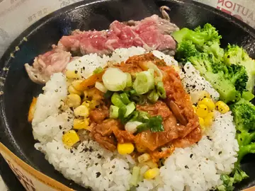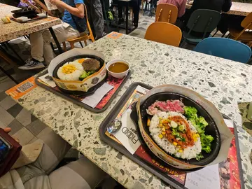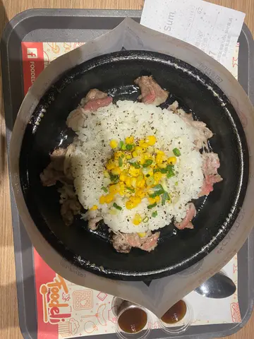 去到food court 食物选择好多,有台式、韩式、泰式、港式,好难选择!由头开始行,行最后一最间就会看见唔少人捧著一个二个铁板盘,吸引我的除了黑椒味扑鼻,那嘶嘶唦唦的声音也增加了食欲😋。最后还是低挡不住铁板和黑椒嘅威力,选择了它:💡黑椒牛肉饭🥓🍚铁板热辣辣,牛肉仍是红色,趁热将所有材料捞匀,牛肉即系变色,黑椒味好香,黑椒可以随意添加配搭埋粟米,口感惹味和甜甜的。💡珍宝黑椒牛肉拼鸡肉饭🥓🍗🍚鸡肉嫩同份量多。