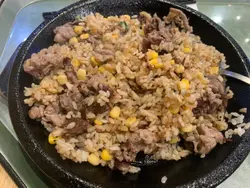 就系最common嘅黑椒牛肉饭$59 我一定会加芝士+$6同行朋友嗌咗蒜香黑椒牛肉肉饭$65 再加蛋加芝士+$12 落埋蜜糖芥末汁,简直系冇得弹!热辣辣又够镬气,劲香口!