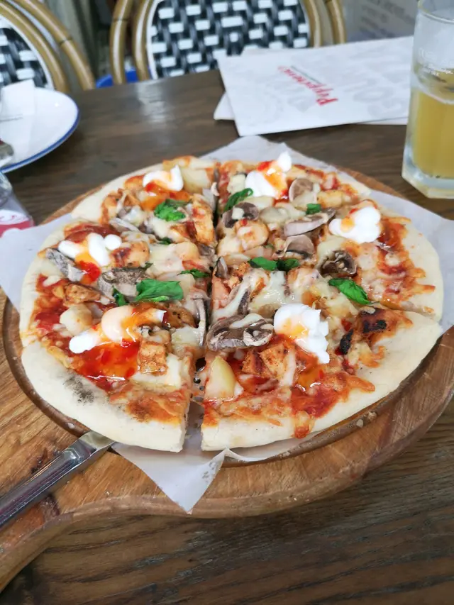 第一次嚟,觉得间舖头好温馨,老板nice, 招呼好。嗌咗个招牌10吋批、一客牛肉酱焗千层面同一杯smoothie. 我比较贪心,smoothie 拣咗士多啤梨+芒果,mix 得好靓,酸酸甜甜好开胃!招牌10吋批系厚批,落单先整。虽然等得耐少少,都值嘅。上边肉肠芝士好多,批底有噍头。千层面真系要赞下!因为自己喺屋企整过,但唔好食,而且功夫多。哩度啲肉酱同芝士超多,反而千层面少啲。小小建议,千层面可以多翻少少仲正。…查看更多