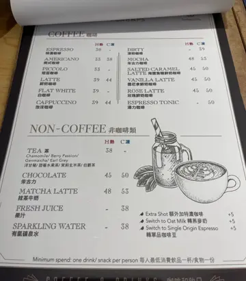 食物:😋😋😋Latte ($44)有做到漂亮的分层,不太懂咖啡,所以不予置评。卡邦尼意粉 ($85)不过不失的卡邦尼意粉,明显可见有蛋酱,但cream味可再浓点,烟肉也可烤脆脆。份量一般,需要配个甜品才满足。服务:🤗🤗🤗自助点餐。环境:🖼🖼🖼店面设计非常易认,容易找到。邻近比较少这类cafe,提供一个舒适的好地方。总的来说,不过不失。还未发挖到特色menu,但装潢不错,可以去享受一下环境。