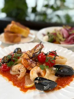 PHI COFFEE & PANCAKE喺启德体育园北园呢间分店,成间舖一入去好有「城市绿洲」feel,成排落地大玻璃将球场同户外景色都带入嚟。室内用咗大堆木色家私同暖色灯光,配合绿色植物做点缀,感觉好似去咗文青cafe,几自然舒服。靠窗位望出去就系启德体育园一带开扬景观,同平时商场入面嘅cafe好唔同,呢度多咗一份空气流通同开放感,坐耐少少都唔觉焗促。如果黄昏时间嚟,外面光线慢慢变暖,店内气氛又再柔和啲,几有度假味。头盘点咗枫糖烤南瓜沙律,南瓜切片烤得好香甜,加埋枫糖之后更滋润,入口非常鲜甜,啖啖肉感,沙律入面仲有果仁碎,令到口感层次丰富,食落去爽口又冇负担。主菜地中海式蕃茄海鲜配吐司,海鲜非常新鲜,啖啖肉,配搭蕃茄汁味道好入味,胶质同肉质都分明,食落去Juicy又有鲜甜,配埋微烤嘅吐司吸晒汁,仲多咗层次。法式鹅肝烩意大利饭,意大利饭煮得啱啱好,烟靱之中带回弹牙,鹅肝味道超惹味,每粒饭都吸收咗鹅肝嘅香气,入口好嫩滑又好冧。圣诞版限定梳乎厘,焦糖红宝石玉桂梳乎厘,班戟真系好蓬松柔软,好Q好烟靱,蛋香重,焦糖同玉桂味道层次丰富,甜而不腻,配合红宝石果干,有少少酸香,好啱女仔食。开心果咖啡香气十足,入口有坚果味,好有丰富感觉。红漾士多啤梨梳打卖相好靓,气泡十足,酸甜味道透心凉。…查看更多