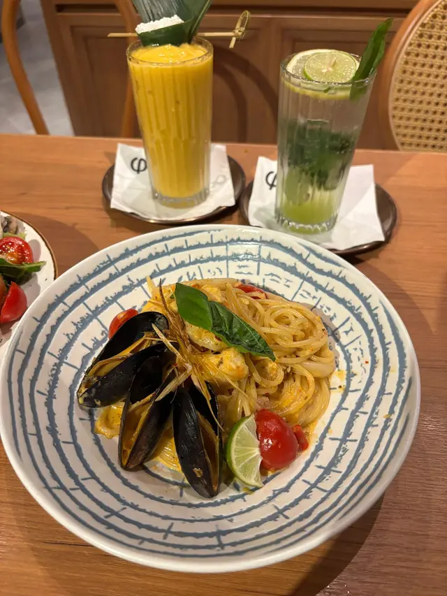 ꧁三個人的晚餐꧂🥣【蘑菇湯】濃郁綿滑,蘑菇香氣突出,口感順滑不膩~👍🥗【芒果乳酪沙律】清新之選,芒果清甜多汁,乳酪醬酸甜開胃,沙律菜新鮮爽脆,完美平衡後續主菜的濃郁感~😍👍🦪【白酒牛油忌廉青口】青口飽滿鮮甜,白酒與牛油忌廉汁融合得恰到好處,醬汁濃郁卻不掩蓋海鮮原味,蘸麵包一流~😋🤤😍🍝【椰香冬陰功海鮮意粉】冬陰功的酸辣與椰香溫潤交織,海鮮分量足且新鮮,味道層次豐富~🤤😋😍🍛【手撕牛肉義大利飯】手撕牛肉入味軟嫩,濃郁醬汁裹著米飯並帶淡淡芝士香,整體風味醇厚~😋🤤👍🌟【香煎雞扒全日早餐】經典All-day Breakfast,雞扒外皮香脆、肉質嫩滑juicy,搭配煎蛋和熱騰騰多士,每次必點~🤤😋😍👍🍑【經典英式伯爵茶疏乎厘】必點甜品!疏乎厘空氣感十足,入口即化,伯爵茶香優雅不甜膩~🤤😋😍👍🍰【芒果輕芝士蛋糕】芝士層輕盈綿密,芒果清甜中和芝士濃郁,整體甜度剛好,適合怕膩的人~🤤😋😍👍🍹【羅勒檸檬特飲】羅勒獨特香氣與檸檬清爽碰撞,酸甜中帶一絲草本氣息,解膩又醒神~👍🧉【Tiramisu Coffee】咖啡酒香濃郁,既是咖啡又是甜品~😋🤤😍📌 總結高性價比之選,九龍灣區難得的精品Cafe,絕對是再訪之選~(。♥‿♥。)📍 **餐廳資訊**👨🍳:Phi Coffee & Pancake🏠:九龍灣MegaBox 5樓…查看更多