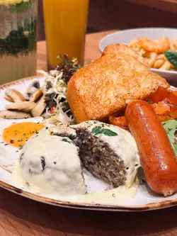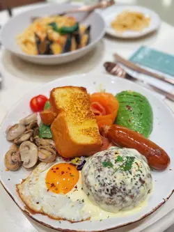 PHI今期竟然出左泰式系列🙏🏼估唔到pancake同芒果糯米饭可以mix埋一齐🥞平时最爱食泰国野既我 带埋妈咪一齐黎食dinnerYoho呢间分店环境坐得舒舒服服又够私瘾度💫叫左两款主食同一份pancake已经好饱好饱🥩 汉堡扒全日早餐 HKD156卖相好丰富 一眼就见到主打超厚既牛肉汉堡扒仲有太阳蛋🍳烟熏三文鱼沙律🥗牛油多士🍞等切开太阳蛋 等蛋汁渗入汉堡扒同牛油多士🤤吐司汉堡扒好多肉汁好好食💦呢个一个人食得晒一定系大胃王🍝 椰香冬荫功海鲜意粉 HKD126去亲泰国餐厅如果有得食我就一定会嗌冬荫功酱汁挂满成个意粉 上碟好香酸酸辣辣带点椰奶香好开胃 大虾同青口都好食🥭 泰式梳乎芒果糯米饭 HKD138最期待就系呢个pancake 摆盘好精致🥞PHI pancake不嬲都好食 梳乎厘够轻盈又重蛋香配埋今次特制既椰奶糯米cream味道好夹比起平时食pancake无咁腻🤭🥥 糯米芒芒椰奶沙冰 HKD68半沙冰状顺滑得黎仲有少少糯米粒咬口天然芒果加埋椰奶好舒服🍃 罗勒柠檬特饮 HKD52罗勒清香好突出配合柠檬酸度好fresh🍋…查看更多