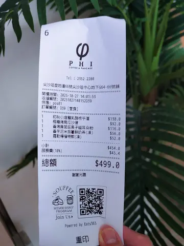今日去咗Shopping途经望见《PHI Coffee & Pancake》这间店舖位于尖沙咀中心、门外单张又有新有新产品出咗☺️、睇到都好吸引就入咗去试吓、整间店面环境开扬周边围绕透明玻璃窗都好光猛🤔、以木系时尚装置柔和色泽、坐著感觉都唔错、同时Lunch时段都有特式抵食套餐☺️!初秋小灯笼乳酪梳乎厘 $138呢一款梳乎厘系以入秋作为卖点、以时令水果柿子真假作配答、整份卖相真的睇得吓😯、三大件梳乎厘以麻糬包裹、入口口感特别加埋柿子香甜、上面桂花糖浆下面乳酪奶、令到整件味道唔同哂、啖啖桂花香咸甜口感😋、加埋忌廉甜滑真的多重口感🤭!枫糖烤南瓜沙律 $92整份南瓜沙律配答我觉得比较特别🤔、以往系以加添黑醋较为醒胃、呢一款系以枫糖较为香甜好有创意嘅配答、食到入口爽香甜、又用咗南瓜加埋其它配料、够哂健康又有营养!香烤舞茸菇栗子猫耳朵粉 $115呢一碟猫耳朵粉够哂健康美食☺️整个卖相色泽配管都几好、系以烤香舞茸菇菇味浓厚、羊肚菌啖啖香爽、栗子嫩粉、加埋鸡蛋香滑及其它配料,猫耳朵外型特别啖啖口感、沾满佢嘅美味酱汁味道更加美味又好食😋!香芋泥米麻薯鲜奶茶 $56呢一杯鲜奶茶卖相比较特别、系以竽泥米麻薯伴饮、令到多层软绵滑口感、别一般嘅味道!罗勒柠檬特饮 $52呢一杯柠檬特饮清爽冰凉通透卖相😚、系热辣辣饮番啖够哂清爽感、又有解腻配埋罗勒令到味道更加特别!…Read More
