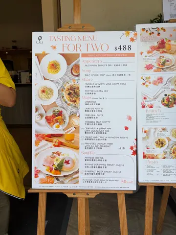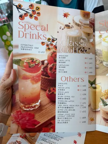今日去咗Shopping途经望见《PHI Coffee & Pancake》这间店舖位于尖沙咀中心、门外单张又有新有新产品出咗☺️、睇到都好吸引就入咗去试吓、整间店面环境开扬周边围绕透明玻璃窗都好光猛🤔、以木系时尚装置柔和色泽、坐著感觉都唔错、同时Lunch时段都有特式抵食套餐☺️!初秋小灯笼乳酪梳乎厘 $138呢一款梳乎厘系以入秋作为卖点、以时令水果柿子真假作配答、整份卖相真的睇得吓😯、三大件梳乎厘以麻糬包裹、入口口感特别加埋柿子香甜、上面桂花糖浆下面乳酪奶、令到整件味道唔同哂、啖啖桂花香咸甜口感😋、加埋忌廉甜滑真的多重口感🤭!枫糖烤南瓜沙律 $92整份南瓜沙律配答我觉得比较特别🤔、以往系以加添黑醋较为醒胃、呢一款系以枫糖较为香甜好有创意嘅配答、食到入口爽香甜、又用咗南瓜加埋其它配料、够哂健康又有营养!香烤舞茸菇栗子猫耳朵粉 $115呢一碟猫耳朵粉够哂健康美食☺️整个卖相色泽配管都几好、系以烤香舞茸菇菇味浓厚、羊肚菌啖啖香爽、栗子嫩粉、加埋鸡蛋香滑及其它配料,猫耳朵外型特别啖啖口感、沾满佢嘅美味酱汁味道更加美味又好食😋!香芋泥米麻薯鲜奶茶 $56呢一杯鲜奶茶卖相比较特别、系以竽泥米麻薯伴饮、令到多层软绵滑口感、别一般嘅味道!罗勒柠檬特饮 $52呢一杯柠檬特饮清爽冰凉通透卖相😚、系热辣辣饮番啖够哂清爽感、又有解腻配埋罗勒令到味道更加特别!…查看更多