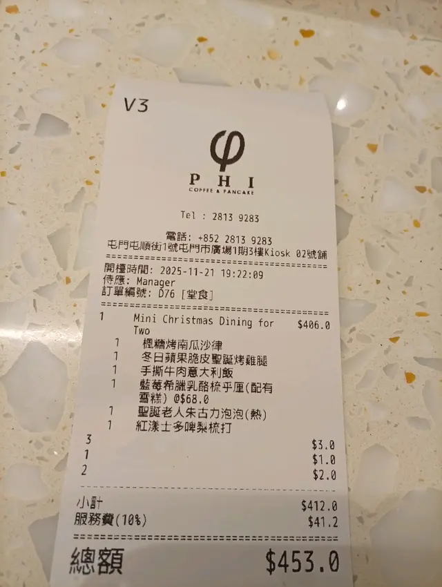 PHI Coffee & Pancake (屯門市廣場1期) (屯门) 网址: https://s.openrice.com/QrLS0RBKA00 地址: 香港屯門屯順街1號屯門市廣場1期3樓Kiosk 2 电话: +852 28139283