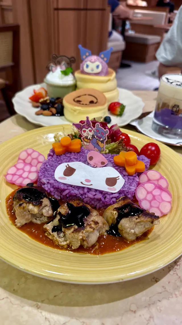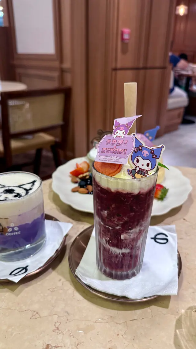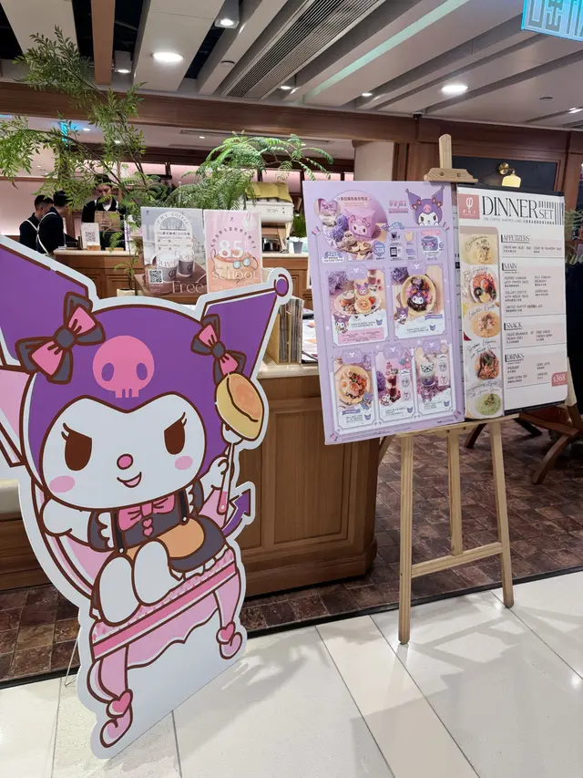 最近見好多人都去kuromi限定主題餐廳打卡看到太可愛了,心動不如行動馬上安排一下放工去食我去了最近的旺角分店但發現旺角分店的kuromi佈置不太多只有門口位置部分而主題食品有3款,飲品有2款🌟全日早餐🍳有煙三文魚,煙肉🥓,煎蛋,腸,蘑菇🍄‍🟫,茄子🍆,Baku造型鬆餅🥞🌟精緻意大利飯🥘Kuromi造型的飯配酸酸的蕎頭,還有煙肉卷🌟🫐藍莓希臘乳酪梳乎厘3塊梳乎厘,以為是雪糕原來是藍莓味乳酪,再配果仁合桃藍莓醬,還有一塊Baku圖案的朱古力曲奇🍪🌟無花果藍莓沙冰藍莓味很出,但食不出無花果,味道很清新,只是略嫌沙冰的冰有點大另一款飲品是紫薯咖啡,因當晚是食晚餐,所以沒有點咖啡來喝,為免睡不着哈哈查看更多
