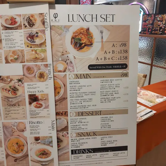 Express Lunch Set 🍽️最近喺PHI Coffee & Pancake 嘗試咗佢哋嘅 Express Lunch Set,淨係 $78,真係好抵食!🎉 呢個午餐套餐除咁有某一種限定款飯/意粉,仲可以揀食soufflé,包括一份足份量既黃金比例原味嘅 Soufflé同埋一杯凍飲,飲Matcha Latte唔洗加錢😍Soufflé口感輕盈,真係keep住黃金比例,有足三大舊,厚度好好,裡面又軟滑,每一口都好香!😋 Matcha Latte清新嘅抹茶香氣,配合 Soufflé,簡直係絕配!☕️呢個套餐唔單止平,仲好食,無論係輕午餐定係下午茶都好啱!👍查看更多