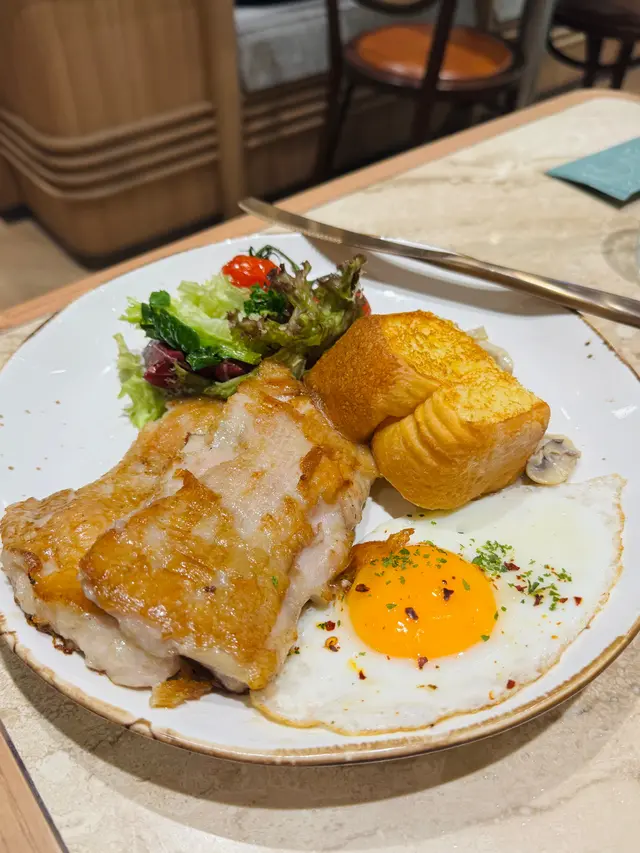 雞扒出乎意料地好食,肉質嫩滑唔鞋,仲有肉汁,個多士都好好味
