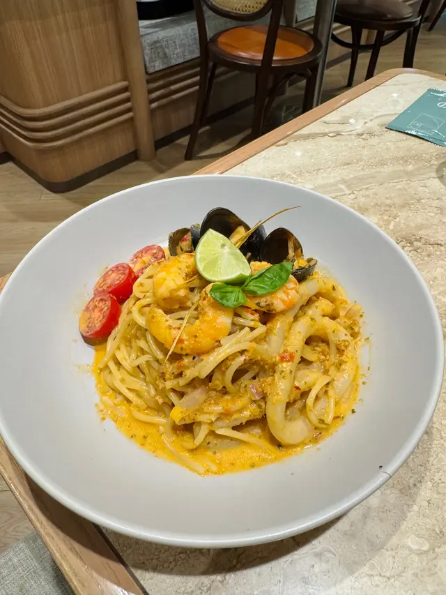 冬陰公意粉亦都好有驚喜,冬陰公汁夠香夠辣但唔會太搶味,海鮮有魷魚、青口、蝦,份量足又新鮮