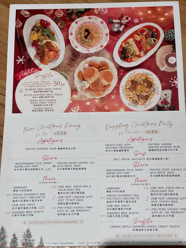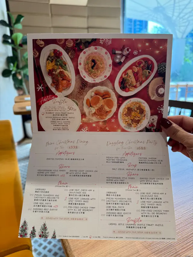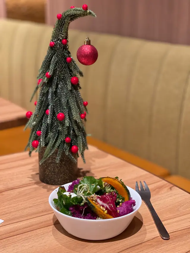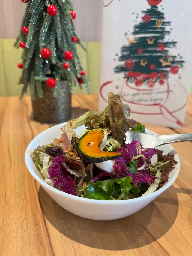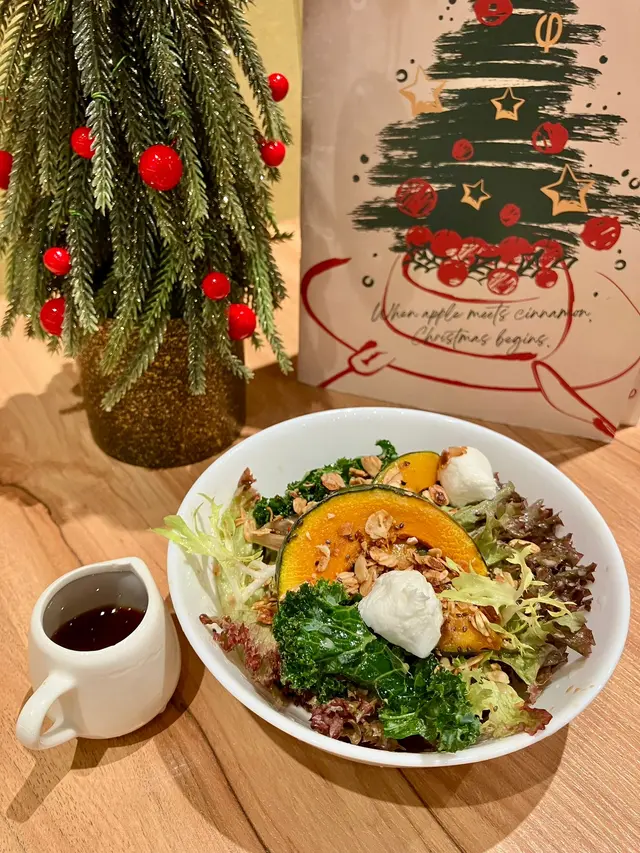 周末趁著聖誕氣氛正濃,特地去了西沙GO PARK放風。在寬闊的休閒區散步、玩玩設施後,肚子也餓了,正好發現了這家藏在園區裡的Cafe。我們提早享受了「首個聖誕大餐」!餐廳裝飾溫馨,帶著淡淡的冬日氣息,我們點了他們的「Mini Christmas Dining」,沒想到每一道都充滿驚喜。😍🌟 楓糖烤南瓜沙律南瓜烤得香甜軟糯,楓糖的溫和甜味與南瓜本身的自然風味融合得很好,配上新鮮蔬菜和輕盈的醬汁,清爽開胃,瞬間喚醒了味蕾。🌟 冬日蘋果脆皮聖誕烤雞腿雞腿外皮烤得香脆,肉質卻依然鮮嫩多汁。最特別的是搭配了烤蘋果片,酸甜的果香平衡了雞肉的濃郁,充滿了聖誕的溫暖感。🌟 香烤牛肝菌栗子貓耳朵粉這道貓耳朵粉口感彈牙,牛肝菌的香氣非常突出,加上栗子的甜糯,整體風味濃郁而有層次,彷彿在口中展開了一場秋冬森林的味覺之旅。🌟 焦糖紅寶石玉桂梳乎厘梳乎厘蓬鬆輕盈,帶著玉桂的淡淡香氣,焦糖醬不會過甜,頂部的紅寶石點綴得恰到好處,為這道甜品增添了一抹節日色彩。🌟 聖誕老人朱古力泡泡這杯可愛的朱古力飲品上鋪滿綿密泡泡,造型係美麗的聖誕花圈。朱古力味道濃郁卻不膩,喝起來順口暖心,完全是聖誕氣氛的加分項!🌟 陽剛香水檸檬茶名字很有趣!檸檬茶清新爽口,帶有獨特的香氣,喝起來解膩又提神,為這頓豐富的大餐畫下清爽的句點。整體來說,GO PARK Cafe的聖誕迷你大餐無論是味道還是創意都令人滿意。環境舒適,適合一家大小或情侶來放鬆享受。🥰…查看更多
