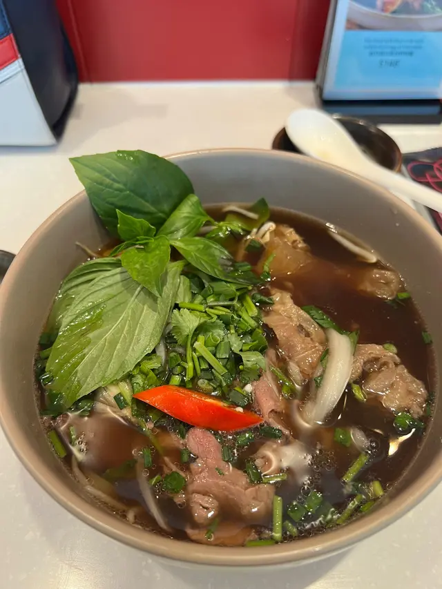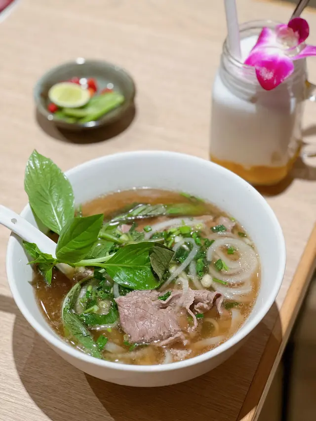 想在圓方吃點不一樣的,就來了這裡,尤其假日的時候,圓方很多人,這家店較隱世,店在 2 樓 Premiere 影院旁,容易找位,主打新派越南菜,環境簡約舒適,適合看電影前後用餐。我點了招牌牛肉湯河,湯底清香,牛肉片和牛丸份量足,配上辣椒和香草,味道很正。另一道越式炸春卷也不錯,外皮脆內餡多汁,蘸魚露很提味。飲品推薦越式咖啡奶茶,咖啡味濃,甜度適中,很解膩。服務效率高,上菜快,店員會主動問要不要加湯,態度友好。價格方面,這家店的價錢尚算大眾化,人均消費百多元左右就可以了。如果來這裡看電影,順道吃點東西,這裡是不錯的選擇。…查看更多