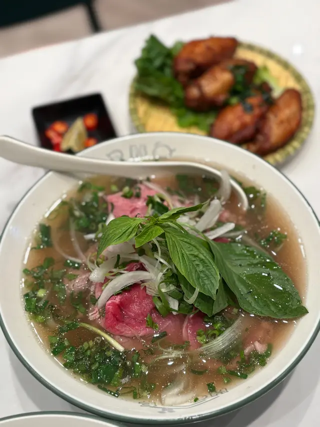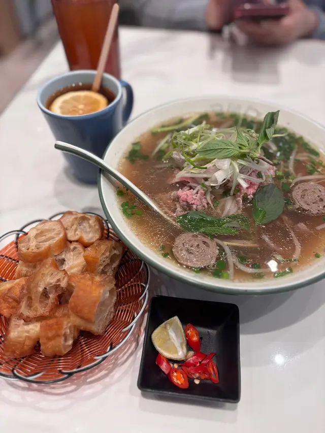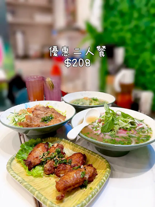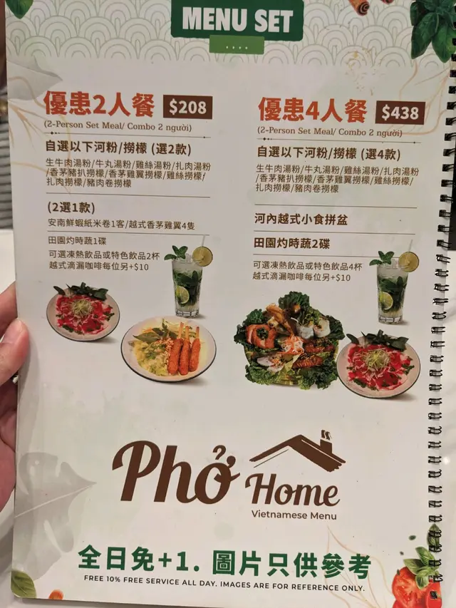 位於旺角的 PHO HOME 主打越南料理,這晚與朋友一同試了他們的 $438 四人優惠餐,這裏全日免加一的,菜式選擇多,份量充足,性價比頗高。上湯浸時蔬有兩份,我們選了生菜,四人吃份量剛好。生菜爽脆清甜,作為前菜非常開胃。小食拼盤最適合人多一起分享。米紙卷清爽,配上酸甜醬汁非常開胃;扎肉煙韌有嚼勁,香料味濃;香茅雞翼外皮脆脆的,不會炸得太乾身;蝦餅外層酥脆,內裏爽口有嚼勁;越式春卷炸得金黃酥脆,滿滿的粉絲點醬汁最好吃。主食方面可選四份,豬扒撈檬是我的至愛,豬扒煎得香,肉質不乾又爽口,撈檬汁酸甜適中,很開胃,配上花生碎更香口。牛丸湯河,清湯底清但其實味道夠濃,牛丸彈牙,河粉滑溜,是經典的越南風味。豬肉捲撈檬,朋友喜歡豬肉捲口感彈牙,也有豬肉香,其他越南餐廳比較少供應,算是特別的。生牛肉湯河,牛肉切得薄身,湯底浸熟牛肉保持鮮味,河粉吸湯味,清淡而新鮮。飲品方面,珍多冰的椰汁味香濃,綠色的珍多煙韌滑溜,很有嚼勁,當甜品都不錯。鮮芒椰汁西米露,甜度適中,芒果香甜,西米煙韌,是女生們的最愛。越南地道柑桔茶,味道酸甜清爽,無論開胃消滯都不錯。蜂蜜柚子茶,有蜂蜜清香,柚子味濃,適合喜歡果茶的朋友。總結PHO HOME 的食物味道不錯,份量足夠,全日免加一都是賣點之一,朋友聚餐或家庭聚會都適合。…查看更多