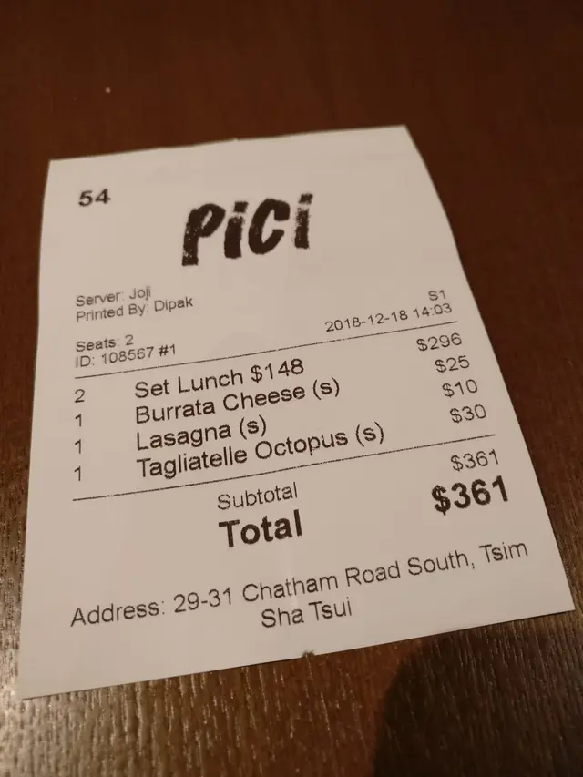 Pici (尖沙咀) 网上订位即赚Rice Dollars 网址: https://s.openrice.com/QrLS0IEO800 地址: 香港尖沙咀漆咸道南29-31號地舖 电话: +852 27712231