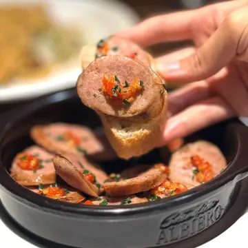 今日同老公去沙田新城市广场,意外发现了这家义大利餐厅,我几中意佢呢种装修风格,好似去左外国西餐厅咁!午餐都有很多选择,还可以根据自己需要加配甜品。还有,每个餐都有法包,不够的还可以问店员添加。喺上菜之前,佢哋会用一个纸袋装住几旧细细嚿嘅法包(5块),跟著店员会倒上黑醋和橄榄油在碟子上,原来是用来配合法包嚟食,包有啲干身唔太软熟,未能保持微温,如果唔够是可以refill, 味道ok啦,唔系差不过又唔算好好食。吞拿鱼酱小牛肉涂在上层的吞拿鱼酱好香浓,好creamy, 但比较有少少咸,涂在下层的小牛肉薄片几香,唔会好干好硬,有口感,劲美味。大虾海鲜浓汁黑细面餐厅所有意粉均为手工制造,比一般普通餐厅出色,好多餐厅煮意粉系煮唔到啲意粉入味,而呢个面好够味,新鲜大虾配上香浓的海鲜汁真系好滋味,大虾鲜甜多汁,虾肉饱满,细面爽口弹牙,口感特别烟韧。意式奶冻配红莓酱红莓酱在奶冻的面层,奶冻好香甜,香浓柔滑够奶味,甜和酸很搭配,比例好好。这里真的是一个非常好的选择,舒适的环境,气氛好,适合和朋友慢慢倾计。食物都唔错,以lunch set嚟讲性价比极高,头盘/餐汤、主食和甜品不用$200, 店内职员都好有礼貌,不时斟水,服务良好,它有多间分店在港九、新界,呢间沙田分店都算大,大家不防可以嚟试试。…查看更多