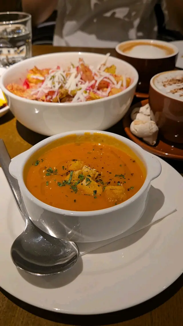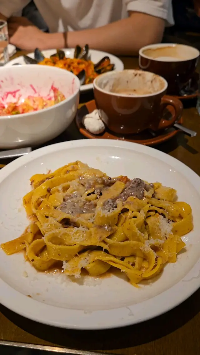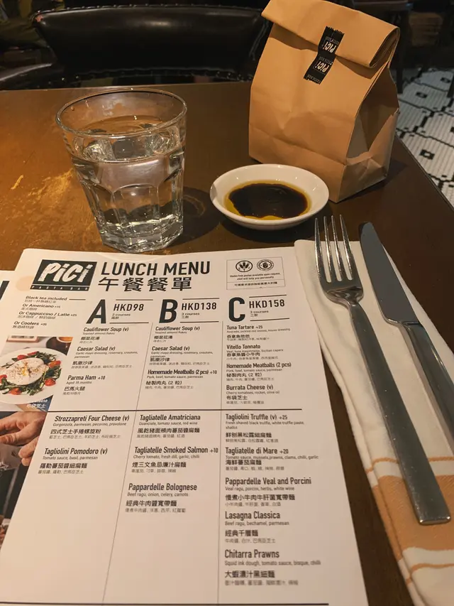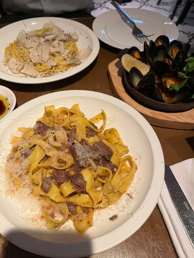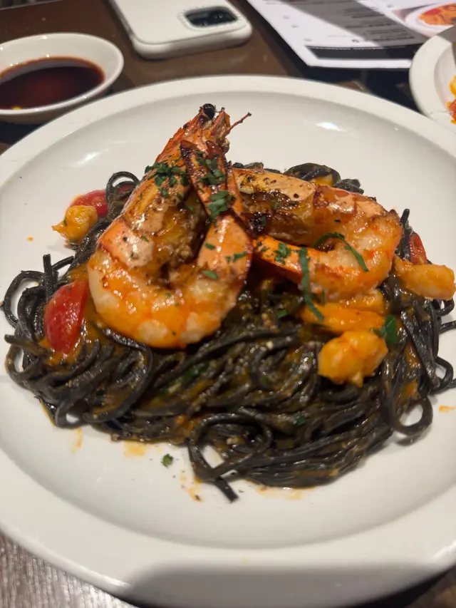 今日同老公去沙田新城市廣場,意外發現了這家義大利餐廳,我幾中意佢呢種裝修風格,好似去左外國西餐廳咁!午餐都有很多選擇,還可以根據自己需要加配甜品。還有,每個餐都有法包,不夠的還可以問店員添加。喺上菜之前,佢哋會用一個紙袋裝住幾舊細細嚿嘅法包(5塊),跟著店員會倒上黑醋和橄欖油在碟子上,原來是用來配合法包嚟食,包有啲乾身唔太軟熟,未能保持微溫,如果唔夠是可以refill, 味道ok啦,唔係差不過又唔算好好食。吞拿魚醬小牛肉塗在上層的吞拿魚醬好香濃,好creamy, 但比較有少少鹹,塗在下層的小牛肉薄片幾香,唔會好乾好硬,有口感,勁美味。大蝦海鮮濃汁黑細麵餐廳所有意粉均為手工製造,比一般普通餐廳出色,好多餐廳煮意粉係煮唔到啲意粉入味,而呢個麵好夠味,新鮮大蝦配上香濃的海鮮汁真係好滋味,大蝦鮮甜多汁,蝦肉飽滿,細麵爽口彈牙,口感特別煙韌。意式奶凍配紅莓醬紅莓醬在奶凍的面層,奶凍好香甜,香濃柔滑夠奶味,甜和酸很搭配,比例好好。這裡真的是一個非常好的選擇,舒適的環境,氣氛好,適合和朋友慢慢傾計。食物都唔錯,以lunch set嚟講性價比極高,頭盤/餐湯、主食和甜品不用$200, 店內職員都好有禮貌,不時斟水,服務良好,它有多間分店在港九、新界,呢間沙田分店都算大,大家不防可以嚟試試。…查看更多