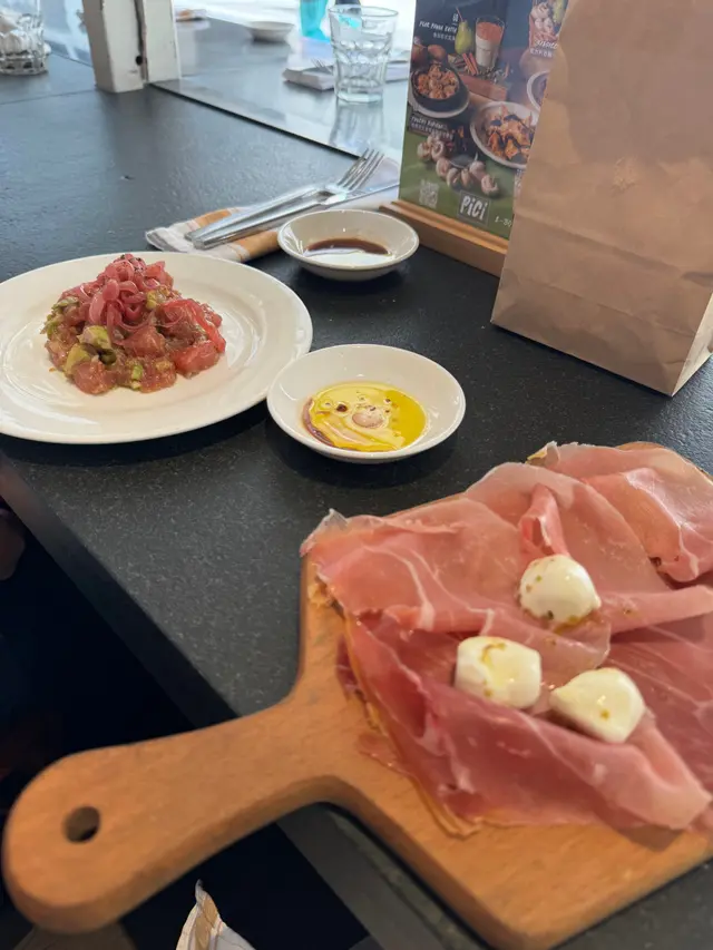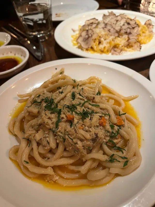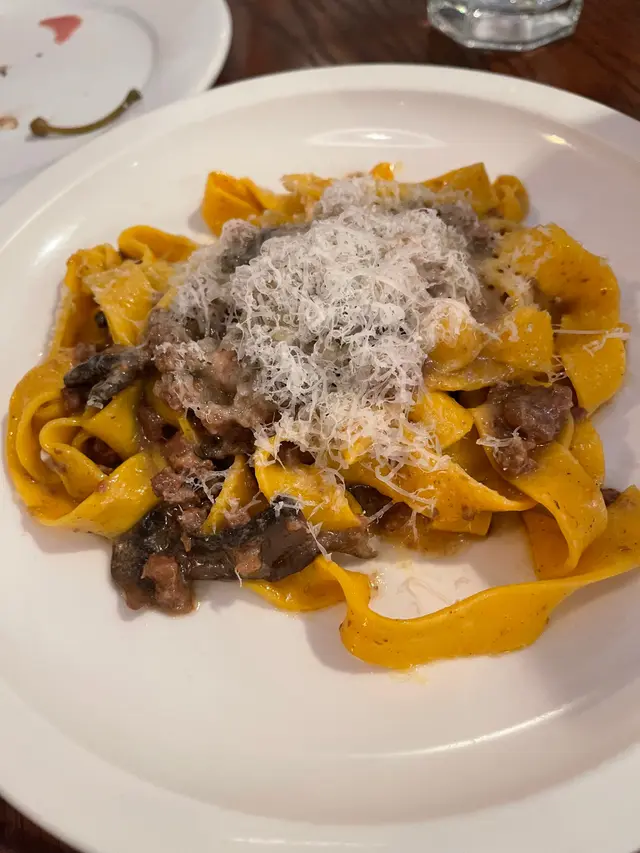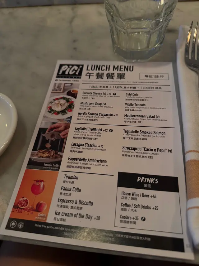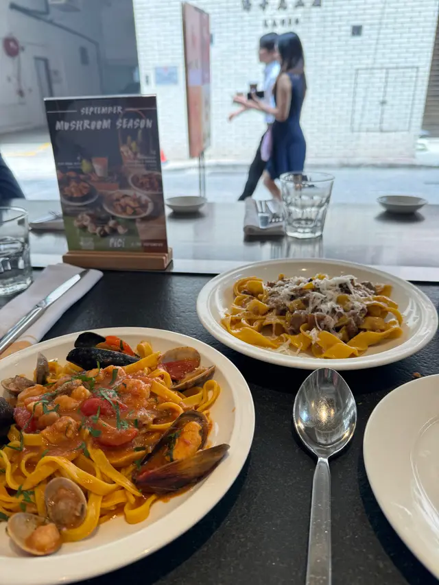 Pici每個月都會推出唔同主題菜式,九月份就係蘑菇季!佢哋lunch set一定最抵,如果夜晚 TastingMenu就最抵!每位$298就可以試到2款菜、3款意粉同2款甜品,平過單點勁多!蒜香芝士牛肝菌手切寬帶麵寬帶麵厚實微微彈牙,牛肝菌味突出,不過濃味/掛汁多啲會更好食 呑拿魚他他調味偏酸,唔太啱我哋胃口生牛肉他他牛肉切得夠細滑身,調味唔會偏咸偏酸,呢個好食!Tagliolini TrufflePici signature !truffle香氣即刻爆出嚟,麵條較幼細相對掛汁,簡單但好正!Pappardelle Beef Cheek牛面肉炆得好腍,pappardelle厚實有咬口,啱晒鍾意重口味嘅人。 Hazelnut Tiramisu 帶堅果香,cream唔會太甜膩,好食!Tiramisusignature咖啡味同酒香平衡得幾好趁9月仲未完快啲去食啦!…查看更多