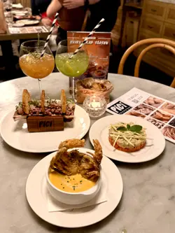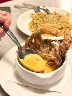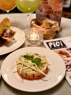 秋风起,也是大闸蟹的季节!嗜蟹我我自然一定会品尝,今年Pirata Group 旗下嘅Pici 及Pizza Project 推出大闸蟹狂赏月,大闸蟹粉菜式再度回归!Pici 出名手工意大利面大家都知,相信不用再多加介绍。近年Pici 一直致力将不同的时令食材融入意大利菜式,每月都有不同主题,所以定期都会去品尝。今个月是大闸蟹,连Pizza Project 都将大闸蟹加入pizza。身为蟹迷,当然首先要去试吓大闸蟹粉意粉大利面啦😆前菜:🌟软壳蟹藏红花忌廉浓汤超浓郁的忌廉汤,香滑浓郁,而且仲有成只香脆软壳蟹,超丰盛美味😋🌟热带蟹肉沙律满满的蟹肉排在清甜的木瓜上,啖啖蟹肉,配清甜的木瓜,及微酸生的芒果丝,更突显蟹肉的鲜味,大满足🤩🌟和牛骨髓他他生和牛他他肉质细腻嫩滑,以切粒呈现,充满口感,配上烤至金黄、溶化般的牛骨髓同吃,非常的鲜味😋。配搭脆饼及珍珠洋葱同吃,味道更平衡,口感更丰富。意粉🌟大闸蟹粉手工圆面($280)重头戏终于出现,鲜味的大闸蟹蟹粉,与手工圆面完美的融合。大厨加入少许藏红花、绍兴酒及姜汁,完全带出大闸蟹的鲜甜味,配上有口感的手工圆面,每条圆面都挂上大闸蟹蟹粉,超美味😋🌟大虾海鲜浓汁黑细面墨鱼汁细面,口感弹牙烟韧,充满海鲜香气,配上大量海鲜及大虾,及用上蕃茄酱汁,更显鲜味。🌟柚子意式奶冻|提拉米苏主餐后当然是甜品时间,柚子意式奶冻也是期间限定新品,大量新鲜柚子肉加香甜奶冻,柚子清新微酸,配香甜的奶冻。提拉米苏是Pici 的招牌甜品,当然是必点,一如既往的香浓幼滑,美味非常。饮品:🌟Kiwi Pomenade | Venetian Iced Tea Pici 特色无酒精特调,2杯都很清新,配浓味的意粉最适合💫…查看更多