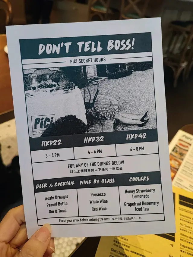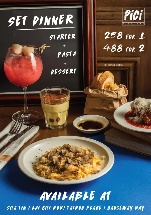 Pici (鲗鱼涌) 网上订位即赚Rice Dollars 网址: https://s.openrice.com/QrLS0fieB00 地址: 香港鰂魚涌英皇道979號太古坊林肯大廈地舖 电话: +852 23288688