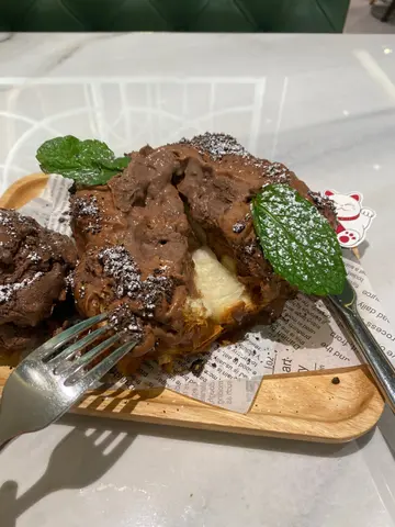 这家店的餐点一向精致从小就喜欢跟家人过来吃饭但 me time 来吃甜品还是第一次 ☕️朱古力丹麦吐司这份餐点需要等候25分钟你会发现非常值得吐司选材很好,烤得外脆内软朱古力将甜而不腻混合着曲奇碎配搭热腾腾的吐司每一口也让人非常满足!唯独是雪糕选材比较普通,没什么朱古力味所以基本上没有吃掉雪糕