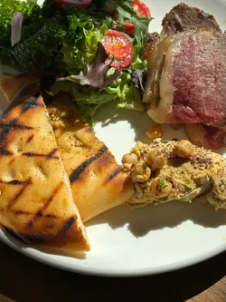 位于天星码头顶层嘅餐厅 环境舒适开扬 有露天座位 好惬意地中海风味烤肉自助午餐 𝐌𝐞𝐝𝐢𝐭𝐞𝐫𝐫𝐚𝐧𝐞𝐚𝐧-𝐈𝐧𝐬𝐩𝐢𝐫𝐞𝐝 𝐋𝐮𝐧𝐜𝐡 𝐂𝐚𝐫𝐯𝐢𝐧𝐠 𝐁𝐮𝐟𝐟𝐞𝐭 ($248)自助吧有烟三文鱼 鹰嘴豆泥 烤薄饼沙律 意粉 烩饭 西式汤 水果 全部都好高质新鲜 烤肉款式每日都唔同 今日系烧西冷牛扒 肉质软嫩熟度恰好 牛味几浓 油脂分布均匀 烤薄饼脆口 咬落软熟 配绵密细滑鹰嘴豆泥食到停唔到口烟三文鱼鲜嫩 配柠檬和香草 味道清新午餐仲包咖啡或茶 亦可以升级酒精饮品 超满足~this rooftop restaurant with spacious outdoor seating offers quality 𝐌𝐞𝐝𝐢𝐭𝐞𝐫𝐫𝐚𝐧𝐞𝐚𝐧-𝐈𝐧𝐬𝐩𝐢𝐫𝐞𝐝 𝐋𝐮𝐧𝐜𝐡 𝐂𝐚𝐫𝐯𝐢𝐧𝐠 𝐁𝐮𝐟𝐟𝐞𝐭 at a super resonable price! the buffet counter features smoked salmon, hummus, pita bread, salads, pasta, fruits… the selection of roasts changing daily, so be sure to check the roast schedule! today they served us roasted sirloin – tender & flavourful. lunch includes coffee/tea but you can also upgrade to cocktails & wine! everything was fresh & of high quality, would definitely recommend for a chill relaxing lunch!—ʜᴋᴅ $248 𝗉𝗉 (lunch)𝙧𝙚𝙨𝙚𝙧𝙫𝙖𝙩𝙞𝙤𝙣𝙨: yes𝙧𝙚𝙫𝙞𝙨𝙞𝙩? maybe𝙤𝙫𝙚𝙧𝙖𝙡𝙡: 7.5/10—📍 Pier 7 Cafe & Bar中环7号码头R楼M号舖Shop M, Level R, Central Pier 7, Star Ferry, Central, Hong Kong…查看更多