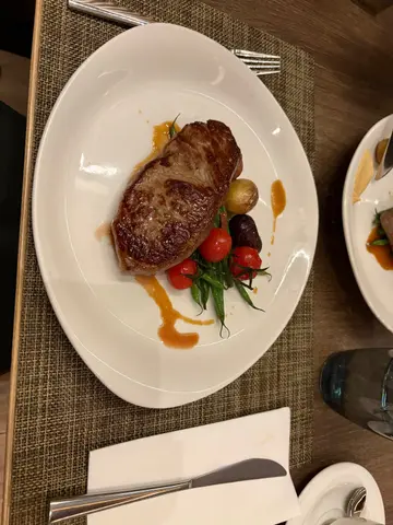 $338 一位 3 courses menu头盘:烟三文鱼沙律/ 蘑菇汤(我哋一人叫一样)Main course 拣左西冷扒甜品系焦糖朱古力蛋糕嘢饮加$20我地系酒店住客,所以有八折埋单两个人$680(加咗杯咖啡)