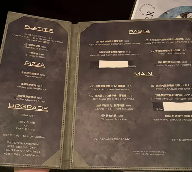 Pillowtalk Restaurant & Bar (屯门) 网上订位即赚Rice Dollars 网址: https://s.openrice.com/QrLS0XSS800 地址: 香港屯門青棉徑5號金寶大廈地下6號舖 电话: +852 29675997
