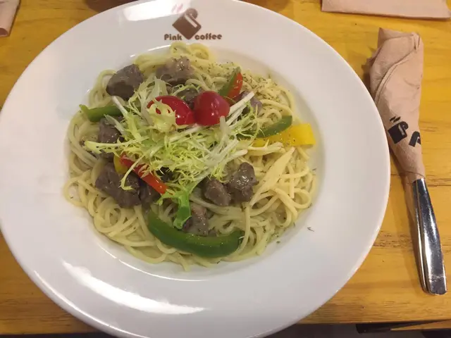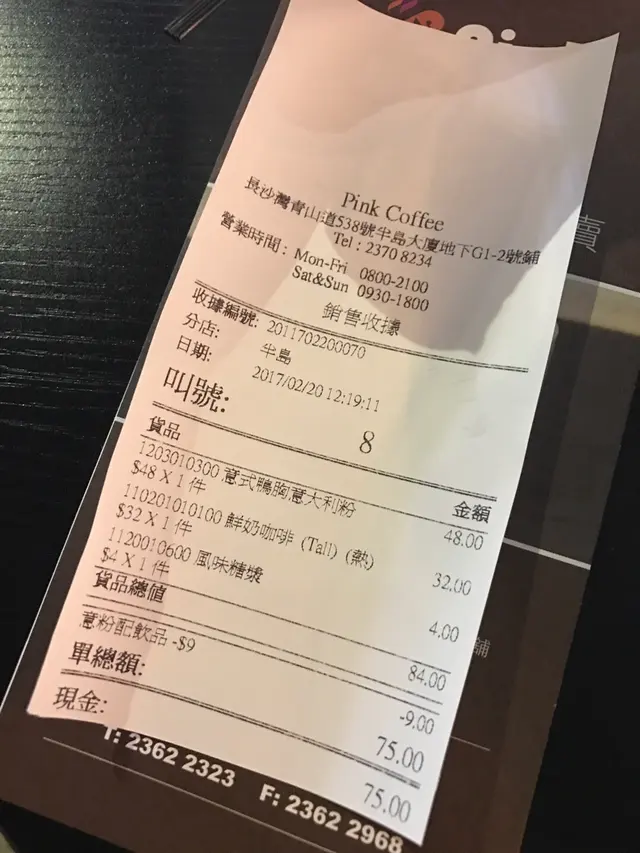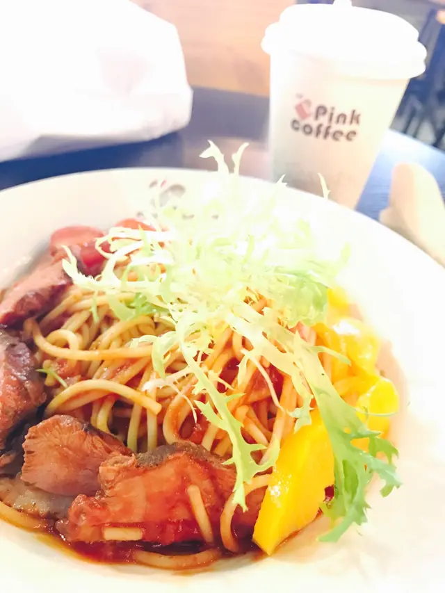 pink coffee係呢區黎講算係偏貴,五十蚊左右得一個飯或意粉,但係無飲品既。咁如果十蚊內可以加個汔水我係無問題既。但問佢佢話無。佢其實係半西餐廳,咖啡店先係重點。所以逼人最多剩係可以叫佢啲咖啡,一係唔好飲野