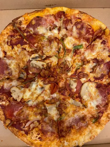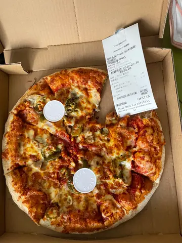 本身已经觉得佢贵山长水远行咗咁耐返到屋企发现佢一啲肉都冇叫咗香辣多宝应该系一个辣嘅多肉pizza一望落去好似乜嘢都冇,以为佢系个chesse下面,食落去同如图乜嘢都冇切又切得唔好。。。…查看更多