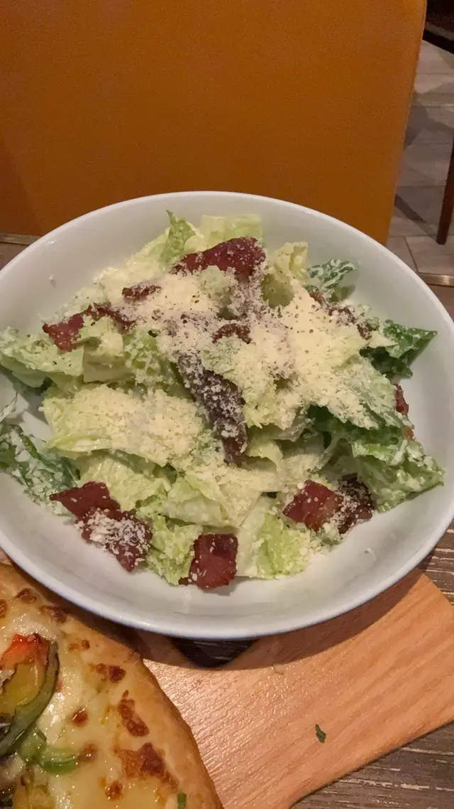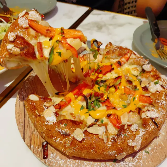 Waited for 30 minutes for our order, but the salad order came after the pizza order. Before my food came, I asked the staff where my food was and got an answer of “we have many pizza orders”. That is not a reason when your restaurant is to make pizzas? Also, the chefs could not spare 5 minutes to prepare a salad? The bill was shoved into the cutlery tray unexpectedly, which is very unhygienic and rude. We ordered the fried chicken pizza, which barely had any flavour and the crust was rough and dry, not crispy. The Caesar salad, which costed 113, was a sad bowl of vegetables with bread crumbs. We thought the bread crumbs were missing but apparently they were mixed with the cheese; their recipe changed the bread crumbs to those packaged ones that can be bought in the supermarket. Not coming back again.查看更多